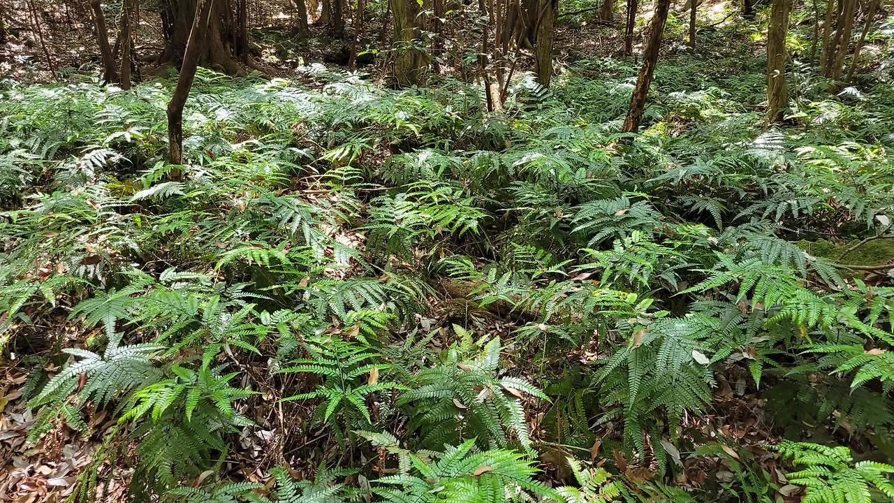 "동백동산 곶자왈의 독특한 자연환경은 여러 종류의 양치식물이 살아갈 수 있는 조건이 됩니다. 멸종 위기종인 제주고사리삼, 그리고 가는쇠고사리, 홍지네고사리 등 다양한 양치식물이 숲의 일원으로 살아갑니다. 건강한 숲이지요."
