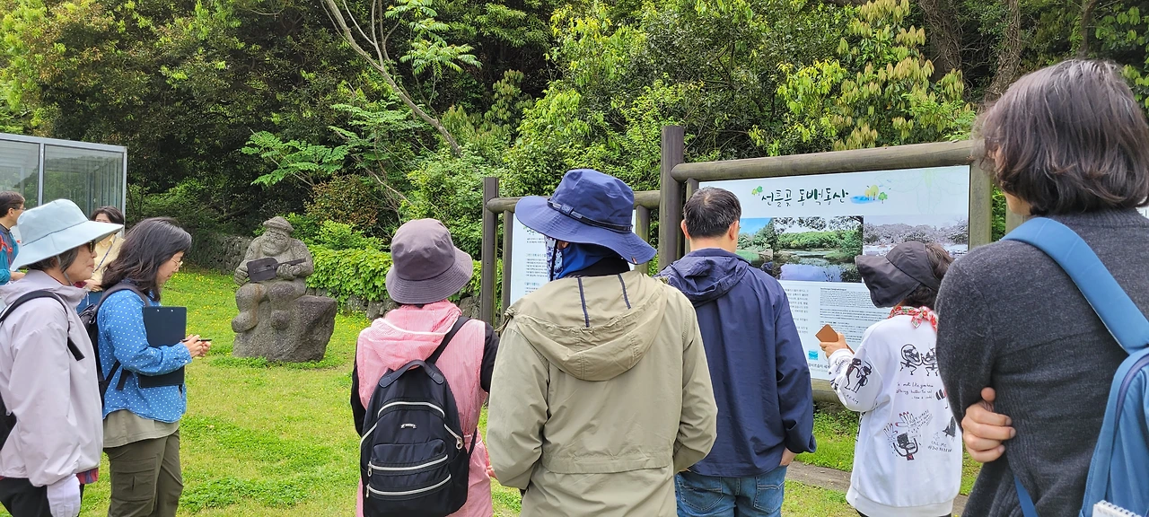 "제주도의 중산간은 물이 귀합니다. 빗물은 화산석 사이로 흘러들어 땅속 깊이 들어가 바닷가에서 솟아납니다. 그 물이 용천수지요. 중산간의 마을 주민은 소나 말에 물을 먹이기 위해 흙을 파내고 돌담을 쌓아 물통을 만들어 물을 이용했습니다. 지금은 습지가 되어 다양한 동식물의 서식처입니다. 자연히 지역 학생들의 생태 학습장으로 활용되기도 합니다."