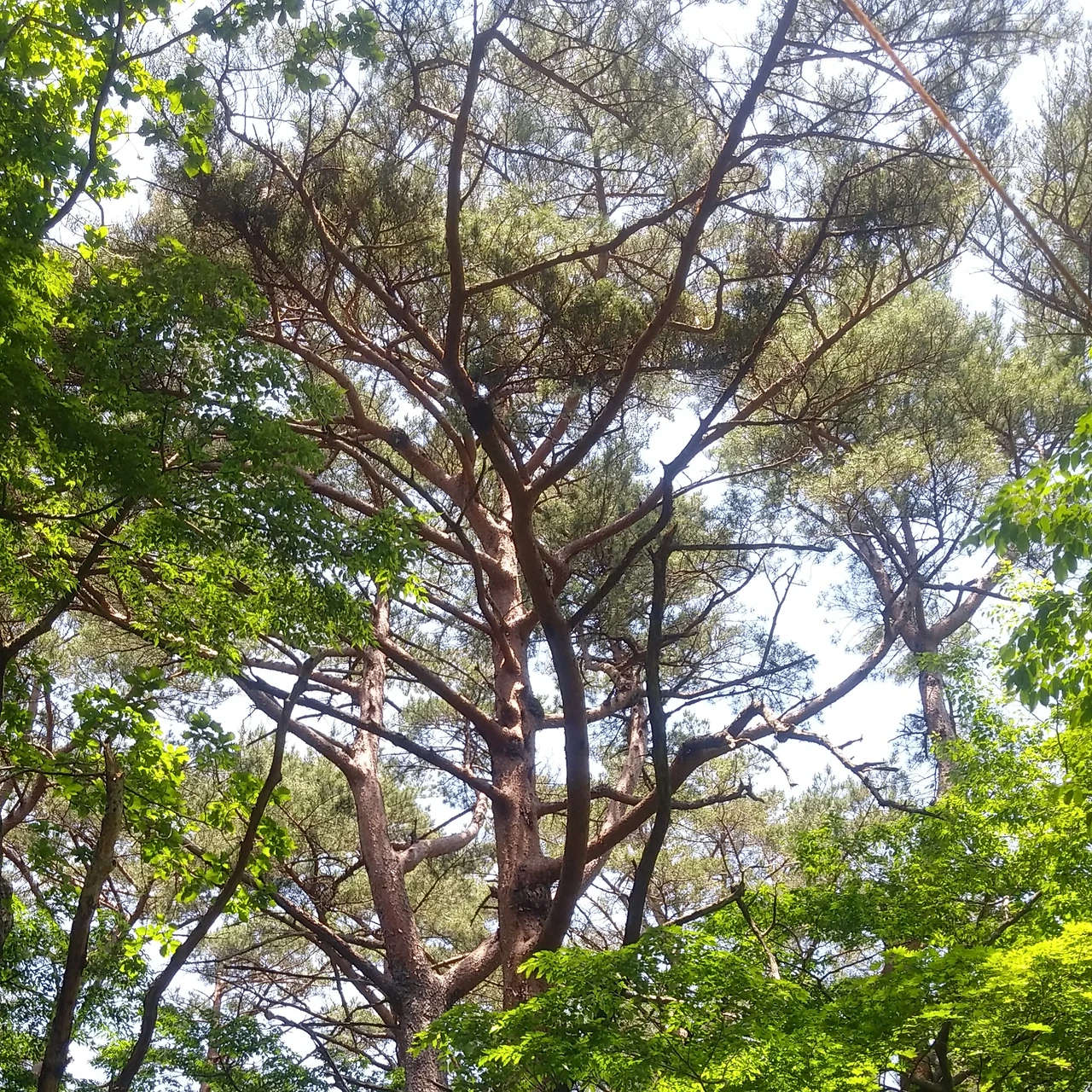 산철쭉과 눈향나무가 장관인 초원을 지나 샘터에서 물통을 채우고 사제비동산의 아름다운 숲길을 들어선다. 단조로운 계단 길이 계속된다. 올라오는 사람들은 입에 단내가 난다. 하산하는 우리는 한결 여유가 있다. 단조로운 길이 아니라 자연생태 학습장이다. 새소리가 들린다. 노루가 후다닥 달아난다. 졸참나무, 신갈나무, 떡갈나무, 상수리나무, 굴참나무가 하늘을 덮고 있어 가슴까지 시원해진다. 서어나무, 때죽나무 등과 서로 사이좋게 자라는 도토리나무 숲이 이어진다.