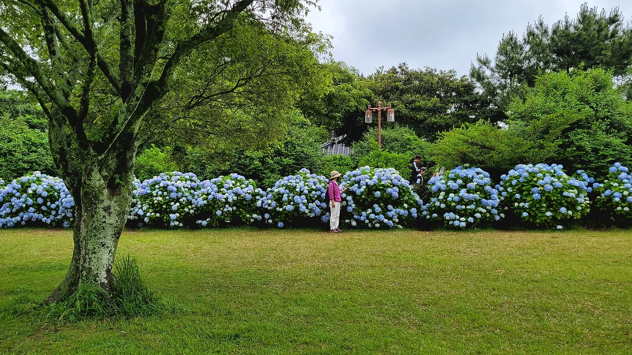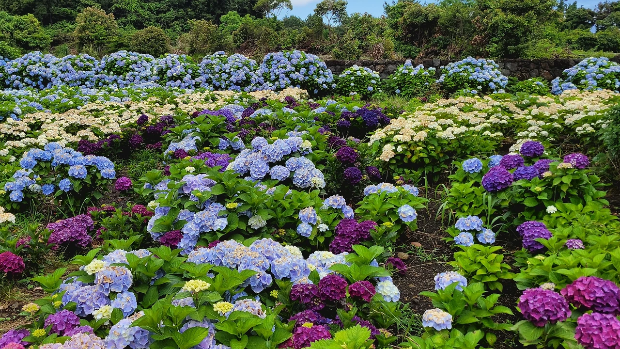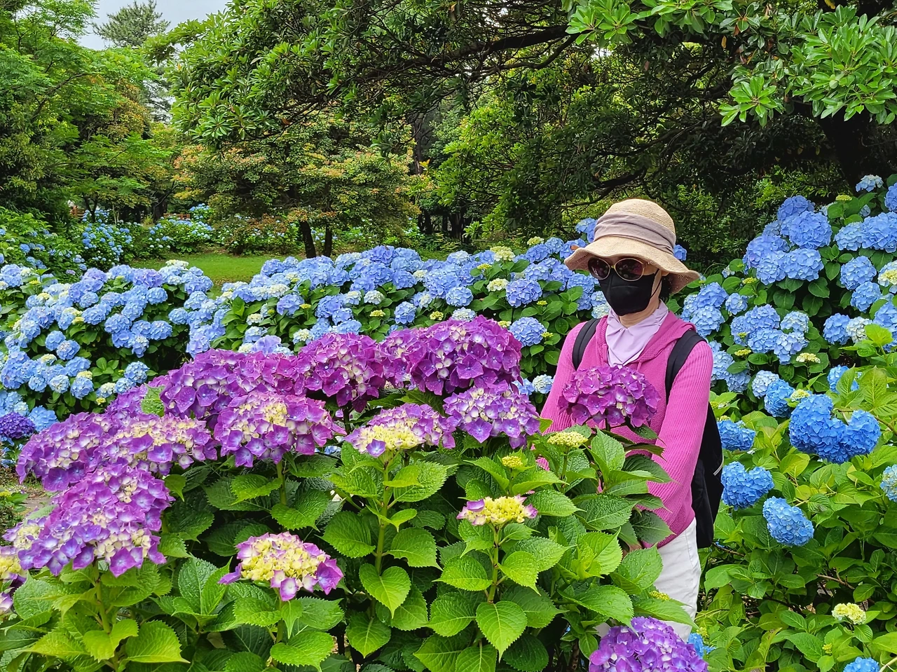 안덕면에 사는 이 선생님이 안덕곶자왈 가는 길의 수국 축제 소식을 전해 준다. 뿐만 아니다. 휴애리, 한림공원, 카멜리아힐과 같은 농원이나 공원에서도 수국 축제가 한창이다. 탐라산수국의 본향답게 사려니숲길, 시험림길, 오름, 곶자왈에도 산수국이 아름답게 피어 있다. 제주에는 수국 명소가 한두 군데가 아니다.
