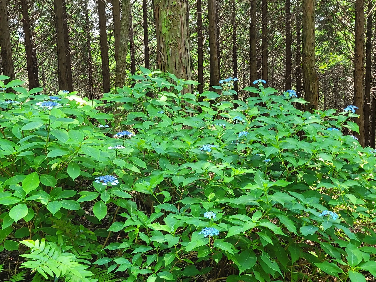 시인 김인호 님은 왕시루봉 느진목재를 오르면서 산수국의 애잔한 삶을 들여다본다. 'ㆍㆍㆍ칙칙한 숲 그늘에 가려 / 잘디잘고 화사하지도 않은 / 제 꽃으로는 어쩔 수 없어 / 커다랗게 하얀, 혹은 자줏빛 / 몇 송이 헛꽃을 피워놓고 / 벌나비 불러들여 열매를 맺는 ㆍㆍㆍㆍ'<김인호 산수국에서 발췌>