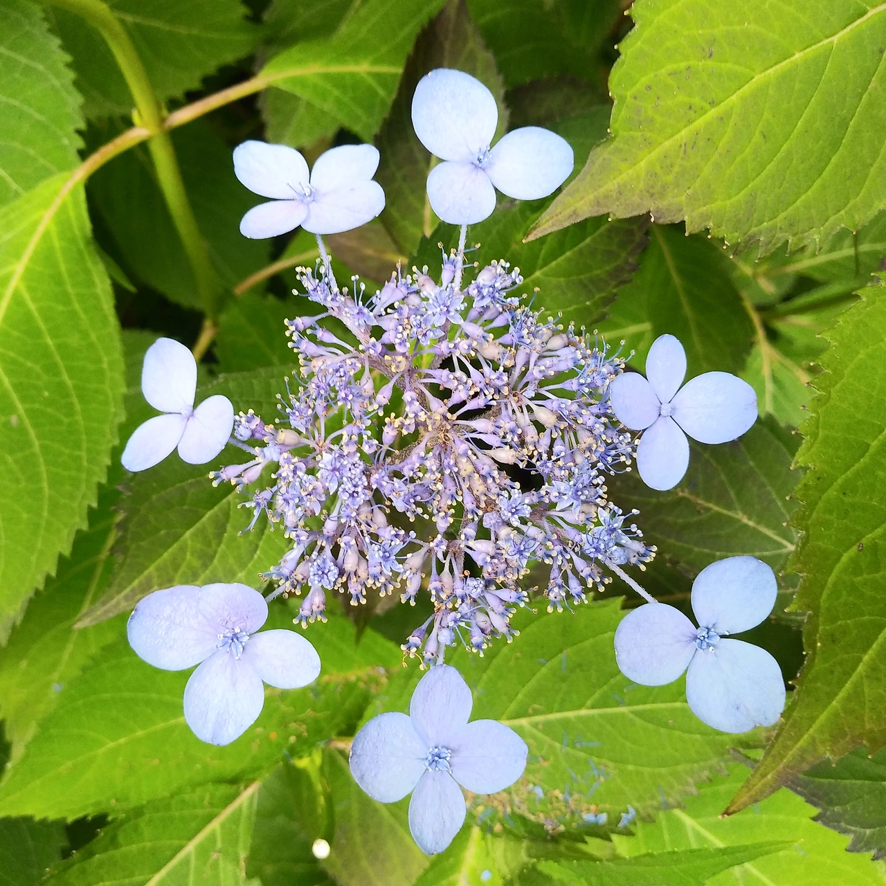 그 작은 꽃 안에 좁쌀보다 작은 꽃이 또 있다. 그게 진짜 꽃이다. 꽃잎은 4~5장이지만 꽃이 피면서 곧 떨어진다. 3~5장의 커다란 꽃받침 잎이 남아 꽃잎처럼 보인다. 헛꽃이다. 꽃받침이 변형된 크고 예쁜 가짜 꽃으로 벌과 나비를 끌어들인다. 살아남기 위한 기가 막힌 생존전략이다.