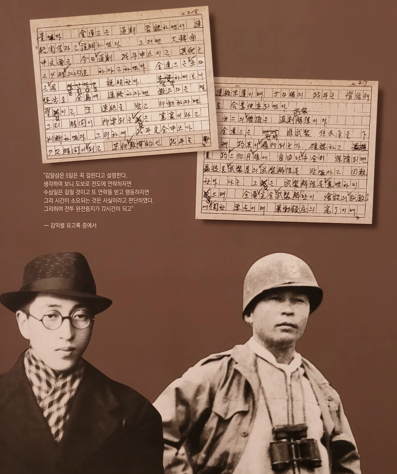 김익렬 연대장(오른쪽)과 무장대 사령관 김달삼은 평화협상에 합의한다.