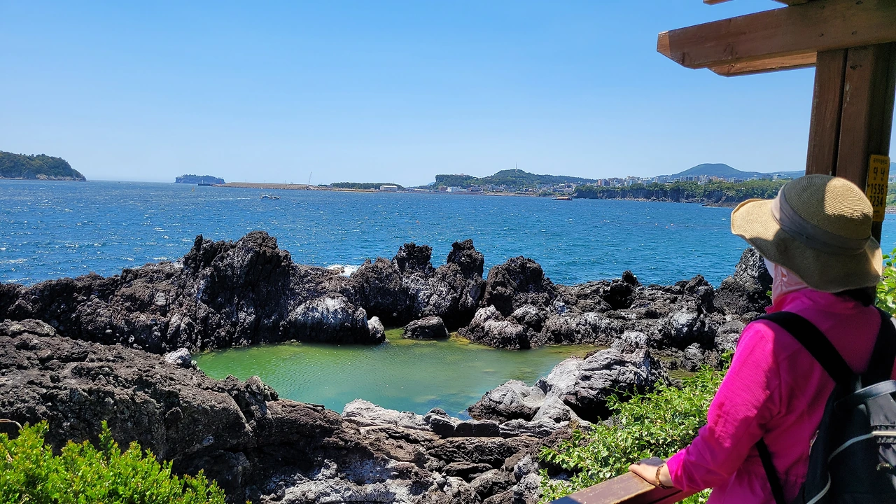올레6길을 지나면서 제주대학교 연수원의 위치에 감탄한다. 그 인근에 소천지라 불리는 곳이 있다. 아래로 내려다보니 사람들이 모여 있다. 코로나 팬데믹 시절에 사람이 모인 장소는 외면하기가 쉽다. 오늘도 아내는 '사람들이 많은데'하며 꺼리는 눈치다. 지난번에도 소천지라는 안내판은 봤지만, 그 때문에 지나친 곳이다. 한번 내려 가보자.