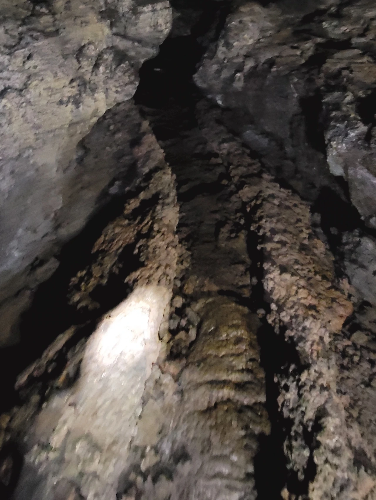 용암주석. 용암이 흘러가면서 만든 기둥도있다. 이는용암주석이다. 이 굴 안에 70여가 있다. 이러한 용암기둥이 미로를 만든다.