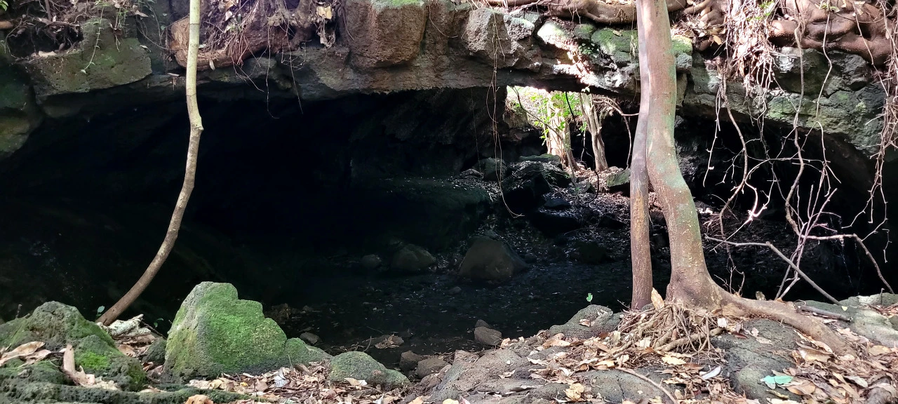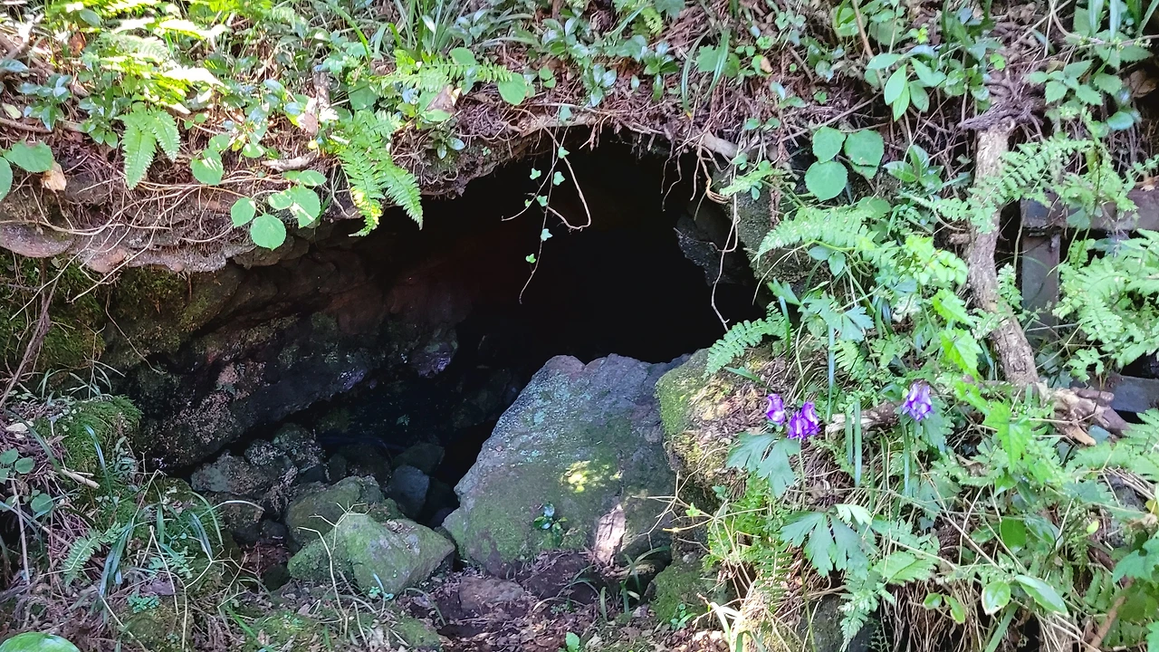 "3 입구입니다. 비가 많이 오면 흙이 흘러들어옵니다. 3, 4일 전에는 비가 많이 와서 장화를 신고 다닐 정도였습니다. 박쥐들이 서식하기 좋은 공간이지요."