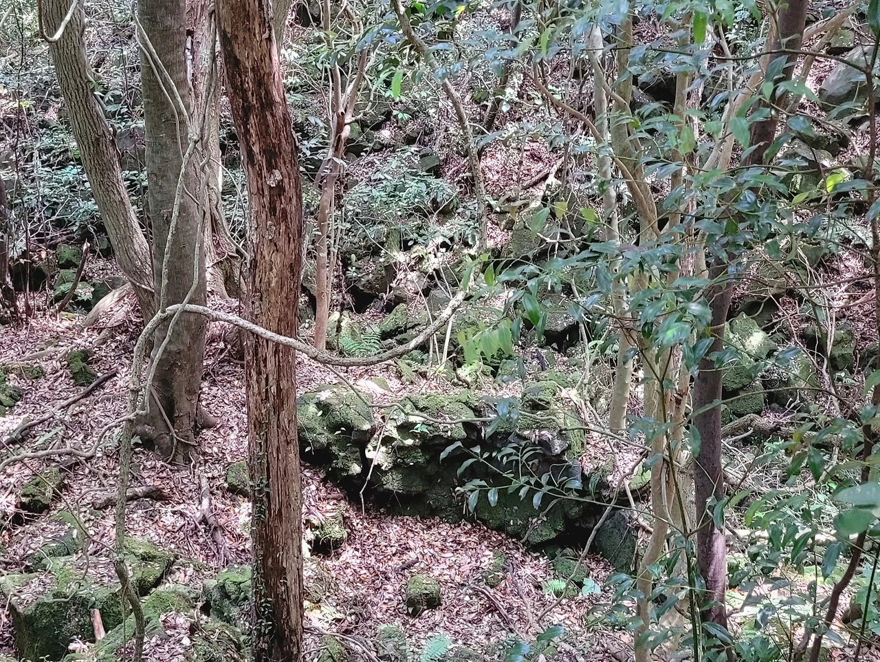 용암이 점점 굳어지며 동굴을 만들어내는 '동굴의 길'초입에서 거문오름 용암동굴계 상류동굴군의 첫 번째 웃산전굴을 만났다. 여기서 용암길은 끝난다. 2구간의 출구이자 3구간 접수처가 설치된 덕천리 부스에 도착한다. 힘든 돌길이었다.
