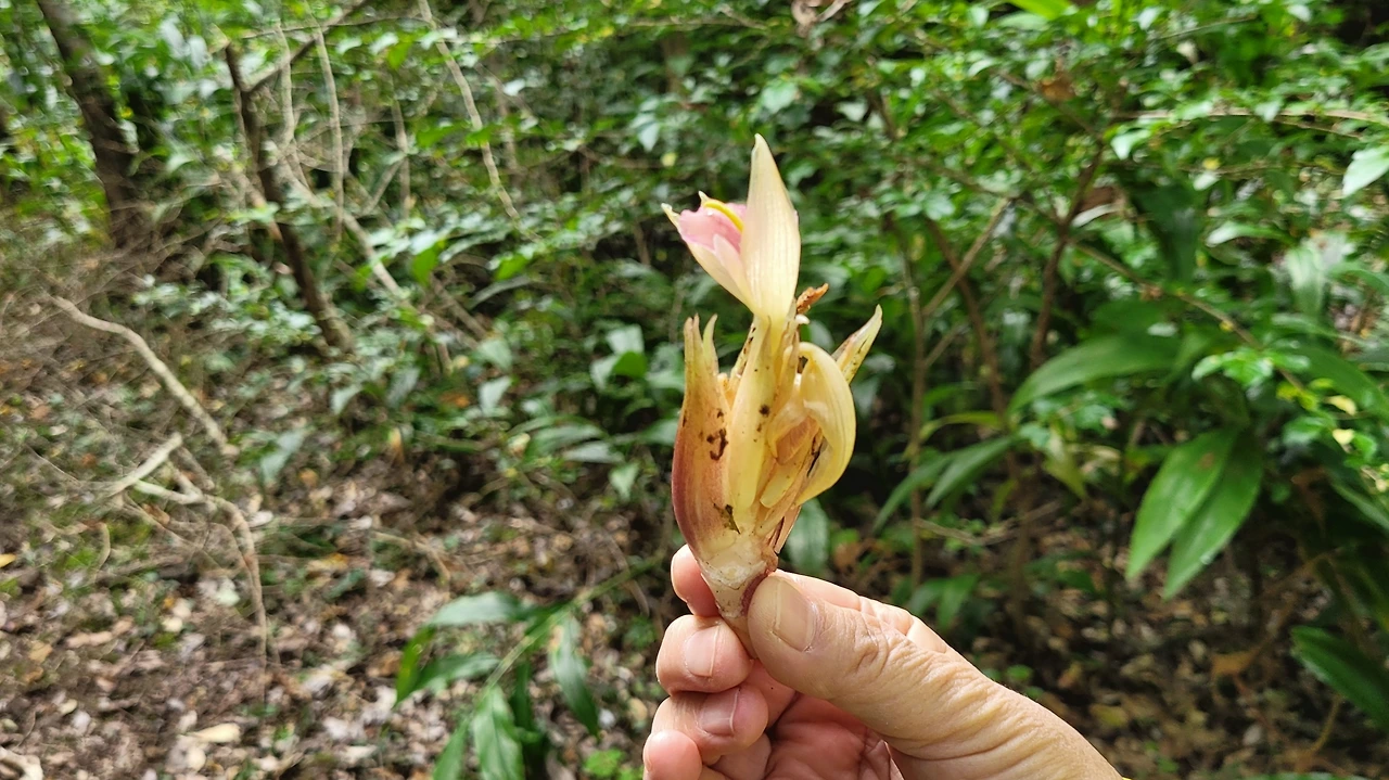 초가집 처마 밑에 심어 빗물이 떨어져 땅이 패이는 것을 방지하고, 특유의 향으로 뱀이 집으로 들어오는 것을 막아준다는 양하가 무리를 이루고 있다. 앞에 본 새우란과 구분이 안돼서 자세히 살펴본다.