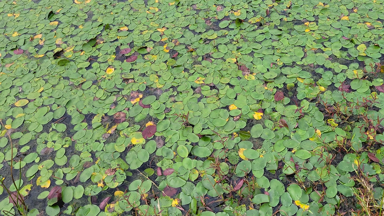 멸종위기 야생식물 2급으로 지정된 진한 녹색의 순채 잎이 잔잔한 수면 위에 '얌전'히 떠 있다. 잎은 가장자리가 밋밋하고 광택이 난다.
