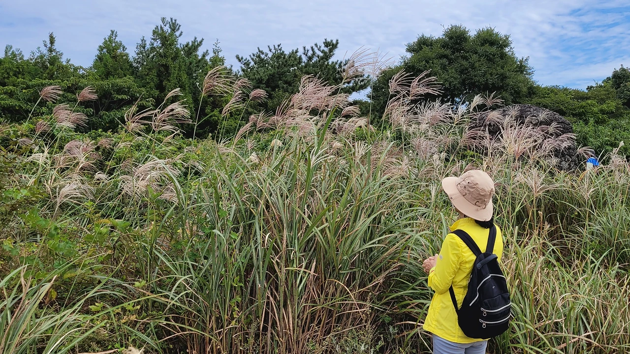 가을이 깊어간다. 억새풀이 꽃을 피우기 시작한다. 무슨 생각을 하는지 억새풀을 한참 들여다본다. (2023. 10. 6)