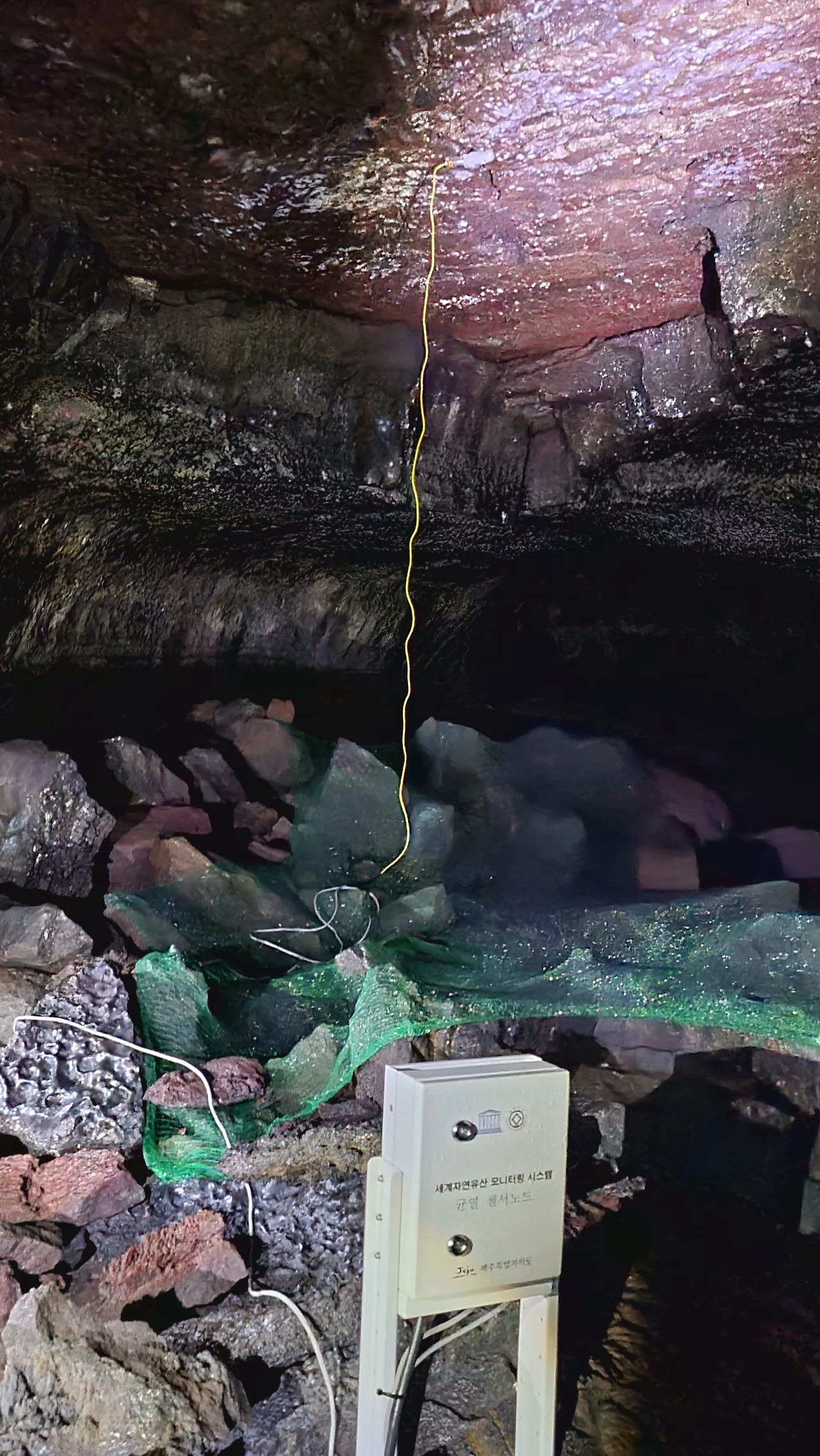 "동굴 안에 각종 모니터링시스템이 갖추어져 있습니다. 온도와 습도도 측정합니다. 지금 13°C정도 되었네요."