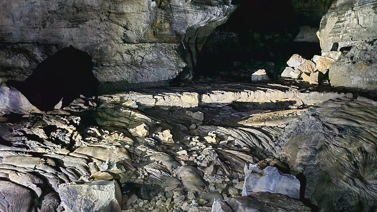 무너졌지만 지하 4층 구조가 확인된다. 용암동굴은 지하 1층부터 아래로 만들어간다. 식어 굳어진 용암이 천장을 하나 만들고, 다시 굳은 용암을 녹여 그 아래층의 천장을 또 만든다. 지하 2층, 지하 3층을 차례로 만든다. 용암튜브 내를 흘러가는 용암의 수위가 일정하게 유지되는 동안 새로운 용암층이 생겨 여러 층으로 이루어진 다층구조의 용암동굴을 형성한다.