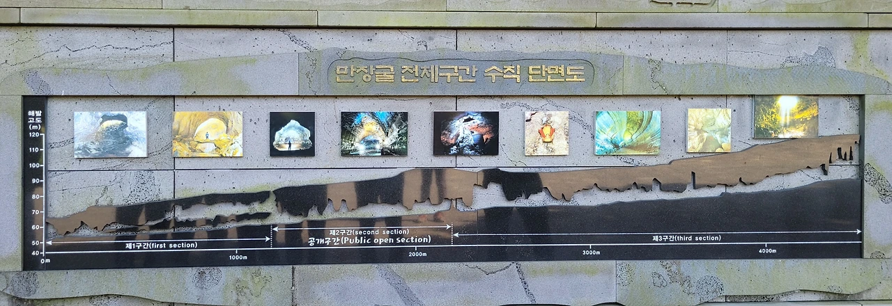 만장굴은 현재 (2 입구로 출입하는) 2구간 1km만 탐방이 가능하다.