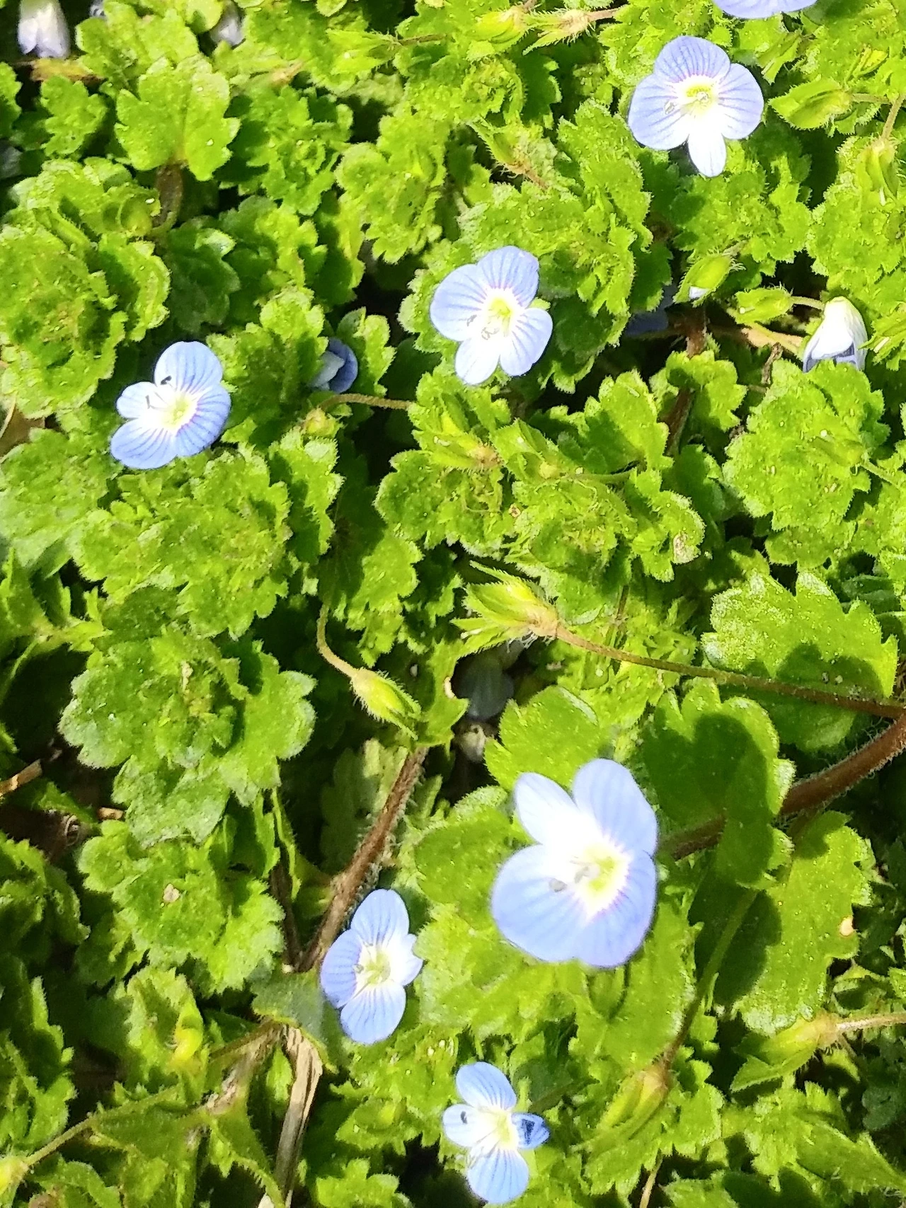 조그마한 하늘색 들꽃이 길섶 곳곳에 피어 있다. 모야모에 물어본다. 큰개불알풀이란다.