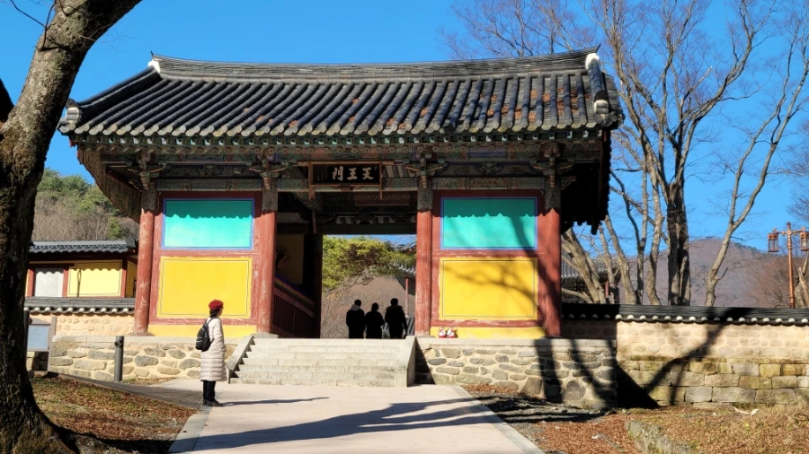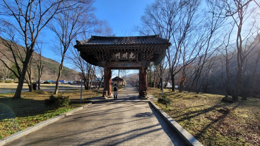 산사를 떠나는 방문객들에게 번뇌의 암흑에서 벗어 날 수 있는 지혜를 갖고 가도록 말 없이 조언하는 광명문을 나선다.