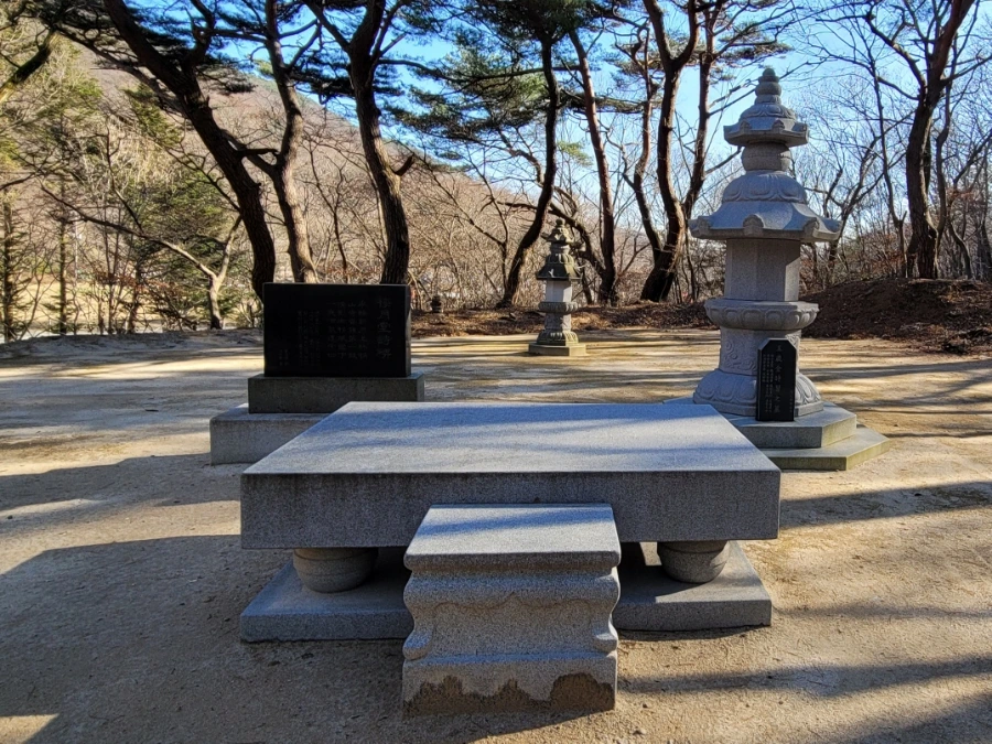 2020년 새로 마련한 김시습 묘소. 부도, 좌판과 시비가가 세워져있다.