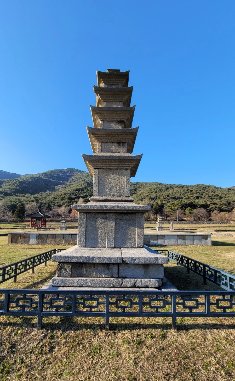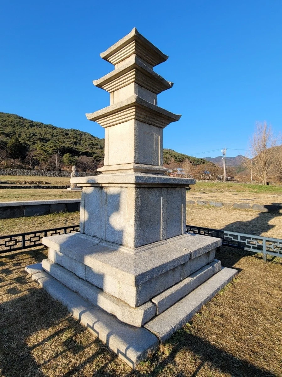 동쪽의 탑으로 간다. 2중 기단 위의 3층석탑, 면석과 몸돌에 새겨진 기둥, 지붕돌에 새겨진 4단의 층급 받침 등이 나머지 두 석탑과 다름이 없다. 또 1층 몸돌에 새겨진 문 그림, 자물쇠와 고리 등도 동일한다. 같은 시대에 같은 양식으로 만들어진 닮은꼴이다.
