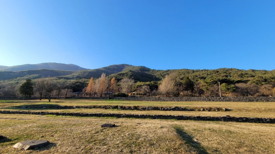 강당에서 앞쪽으로 바라 본 성주사지의 모습