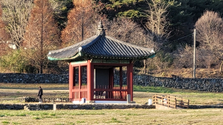 성주사는 임진왜란을 겪으면서 쇠퇴하기 시작하여 17세기 말 폐사된다. 우리는 그 터에 남아 있는 많은 유물로 옛 성주사의 영광을 짐작해 본다. 폐사지라 을씨년스러운 분위기일 것으로 생각했는데 전혀 스산한 느낌이 들지 않는다. 반듯한 넓은 평지 절터에 뒤로 위압적이지 않은 나지막한 산자락이 절터를 부드럽게 감싸고 있다. 절집은 없어졌지만 석등, 불탑, 비각, 작은 석불이 폐사지를 지키고 있다. 그 풍경이 오히려 아늑하다고 느껴진다. 왼쪽 비각 앞의 넓은 마당에서 아이들이 연을 날리고 있다.