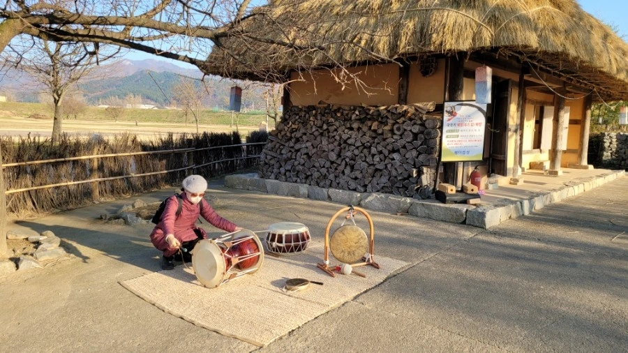 혼자서 북치고 장구친다. 지게도 짊어져 본다.