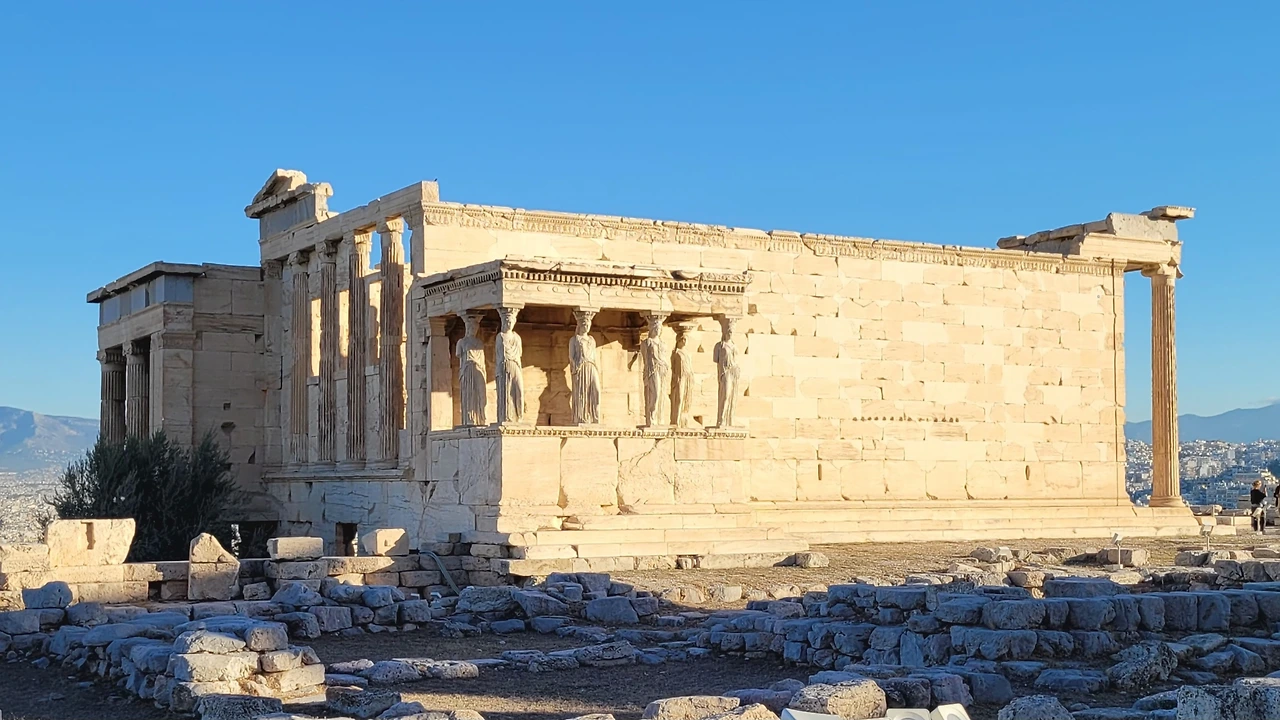신전의 남쪽 벽면에 우아한 자태를 한 여인상을 조각한 6개의 기둥이 서 있다. 에레크테이온은 이 여섯 여인 덕분에 더욱 유명해졌지요. 이 여인상은 모두 모조품입니다. 진품 중 다섯 개는 아크로폴리스 박물관에, 한 개는 영국 박물관에 있다고 합니다."