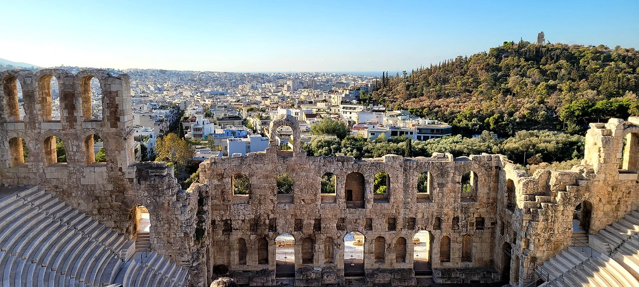 히로데스 아티쿠스 극장. 멀리 필로파포스 언덕이 보인다.