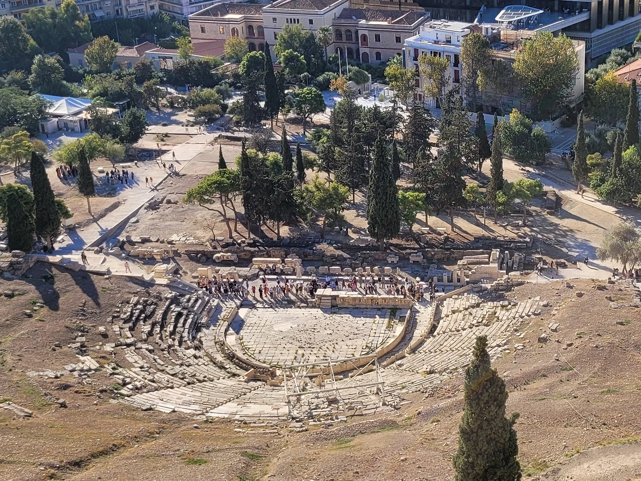 디오니소스 극장, 그 뒤로 국립정원과 여러 박물관이 보인다.