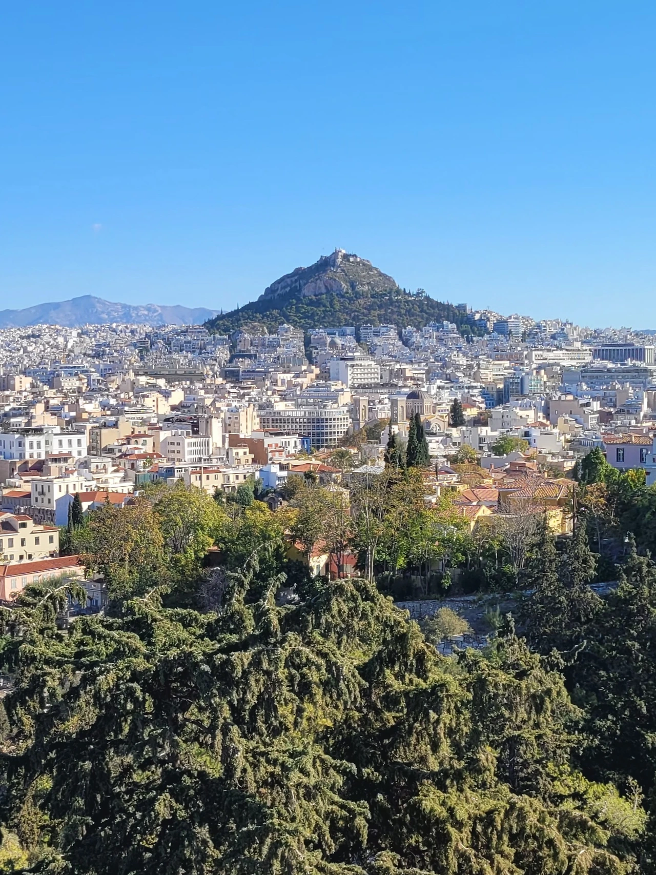 그리스 국기를 게양한 전망대에 올라 아테네 시내를 내려본다. 동쪽 건너편에 우뚝 솟은 해발 고도 277m의 리카베투스 언덕이 다가온다. 늑대의 은신처였던 까닭에 '늑대의 언덕'이라는 뜻인 리카베투스라는 이름이 붙여졌다고 한다.