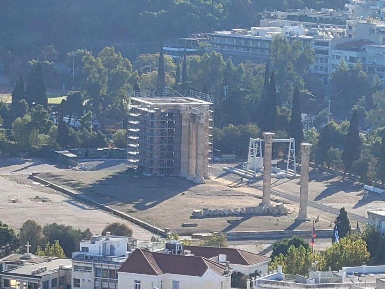 올림포스 12 신 가운데 최고의 신인 제우스에게 바친 신전. 기원전 6세기, 참주정(고대 그리스 초기 민주정이 위태로울 때 과도기적으로 정권을 장악한 권위주의적인 정치형태) 아테네 시대에 건설이 시작되어 2세기 로마 황제 하드리아누스에 의해 완성되었다.