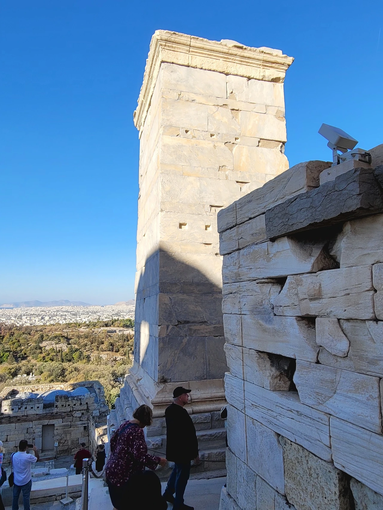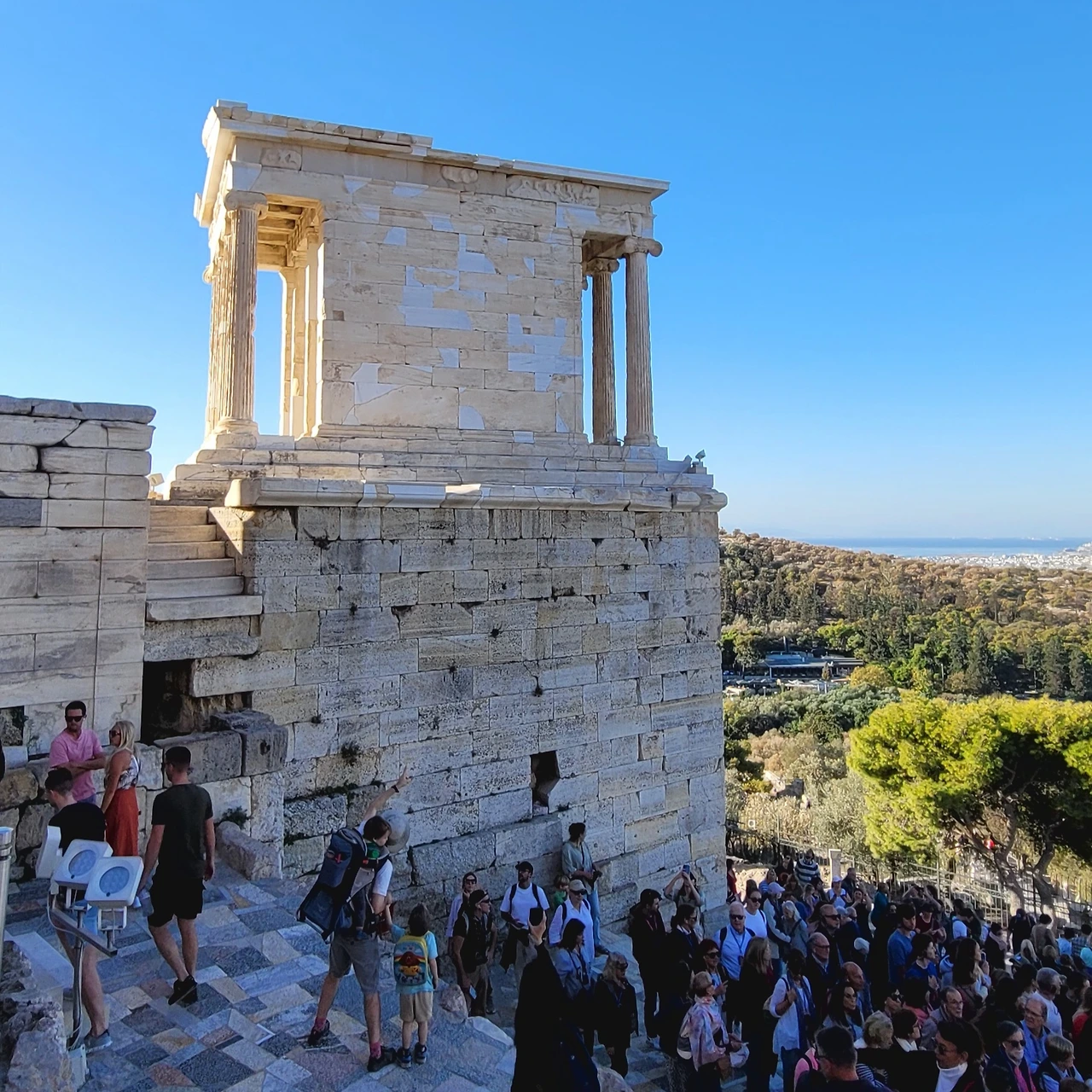 계단 오른쪽으로 돌출된 건물이 있다. 니케 신전은 프로필라이아보다 작고 한쪽 옆에있어 눈에 잘 띄지 않는 곳에 있다. 용케 고개를 돌려 사진을 찍는다.정문의 일부인 줄 알았다. 이어 눈에 익은 파르테논 신전이 나타나고 인파에 밀려, 신전으로 간 가이드와 일행을 놓친다. 후기를 쓰면서 그게 니케 신전이라는 것을 안다.