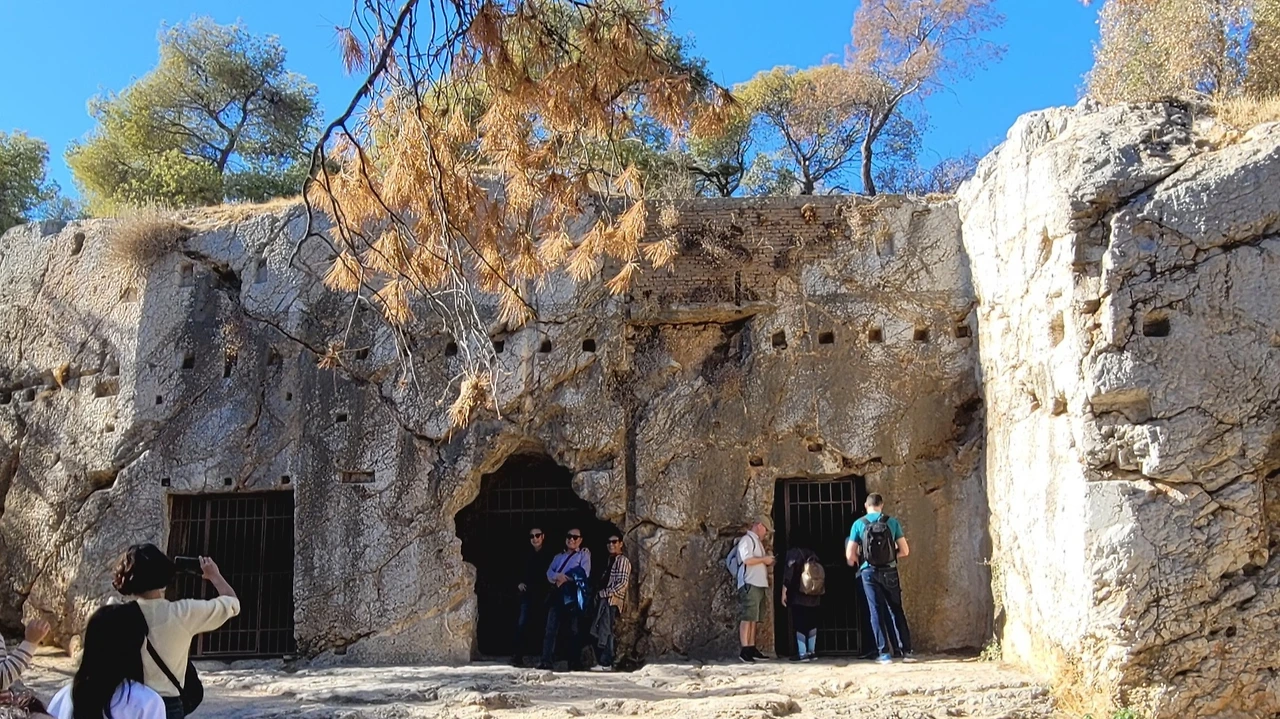 "소크라테스가 사형 집행을 기다리며 한 달 동안 머물렀다는 감옥입니다. 원래는 철창이 없었다고 합니다. 노숙자들이 들어가기도 하여 철창으로 막았다네요. 믿거나 말거나."