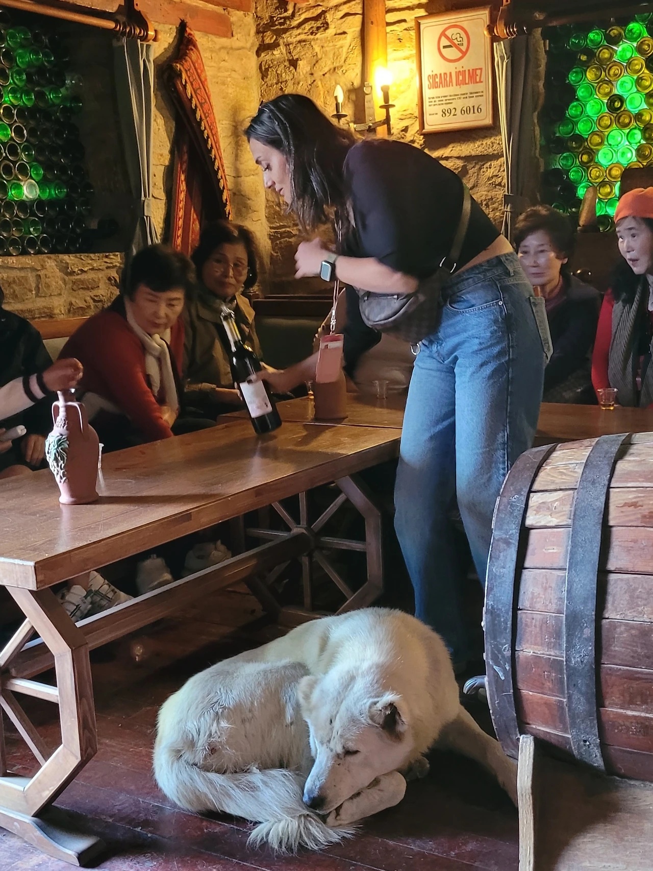 달달한 과실주가 입 맛을 돋꾼다. 한국말을 유창하게 하는 와인 가게 종업원이 "더 많이, 더 많이"를 외치며 관광객에게 시음할 와인을 따른다. 튀르키예의 개는 순하다. 와인 시험장에 송아지만 한 개가 졸고 있다. 아내는 석류로 담근 달달한 발효주 세 병을 산다.