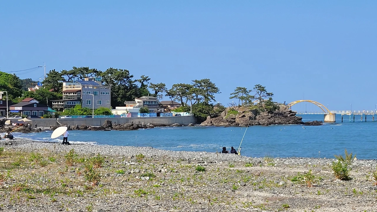 몽돌이 깔린 맑고 깨끗한 해변과 캠프장은 선돌바위, 노랑바위, 가는골바위, 갈막덤바위, 굴밑바위를 지나 어물항에 이르기까지 이어진다.