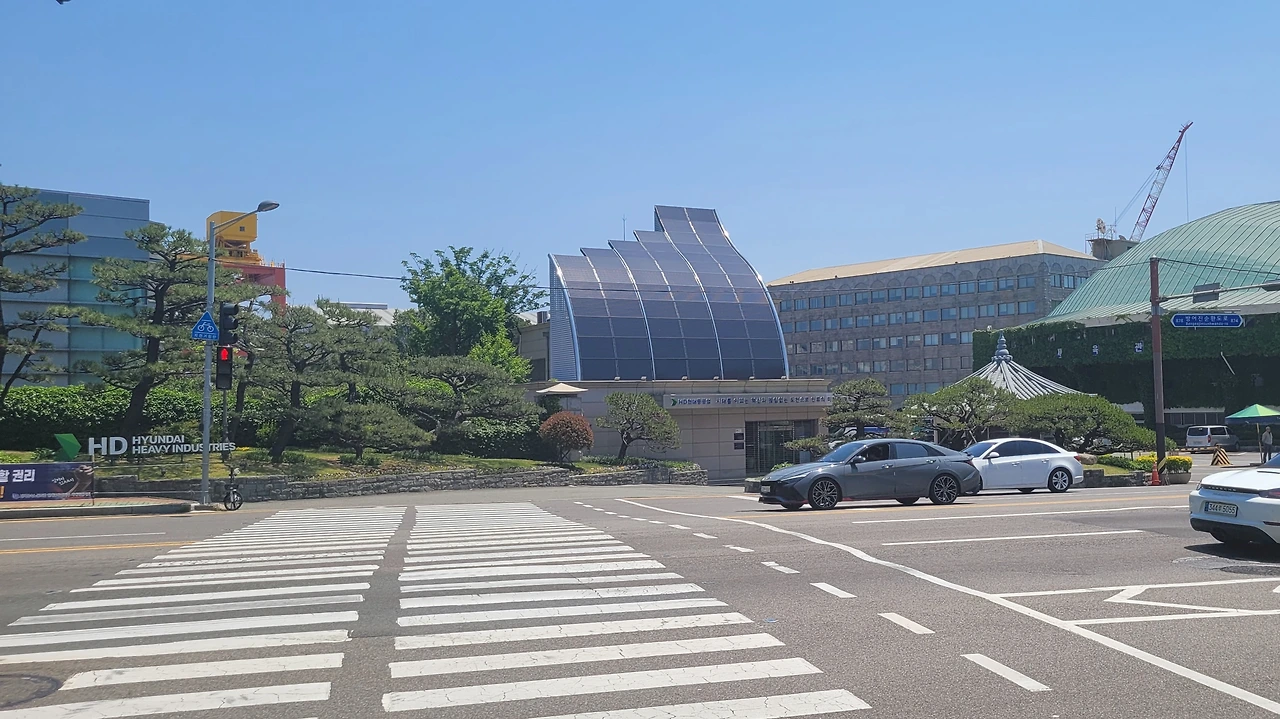 현대중공업 정문 앞에서 방어진순환도를 건넌다. 울산대학교병원, 현대예술공원, 현대백화점이 차례로 있다. 전하동이다. '현대'라는 명칭이 많은 것은 당연하지만, 전하와 함께 바드래문화관, 바드래공원, 바드래체육관 등 '바드래'라는 명칭이 유독 많이 보인다. 전하(田下)마을은 '밭 아랫마을'이라는 뜻이다. 옛날 염포산 기슭에 밭이 많았고, 그 아래 바닷가에 촌락이 이었다. 밭아래(전하)를 발음 나는 대로 표기하여 바드래다.