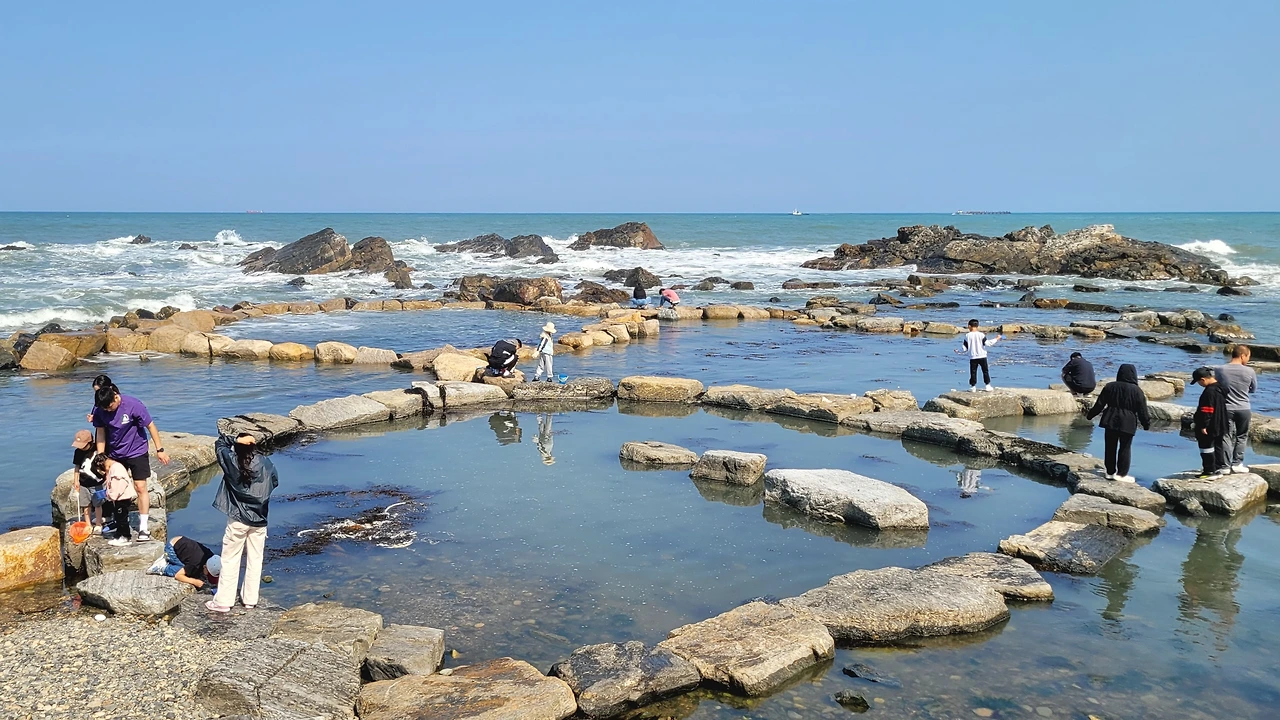 바다를 돌로 빙 둘러막아놓은 어촌체험장. 아이들은 맨손으로 소라와 고동을 잡는다. 유료 체험장이다.