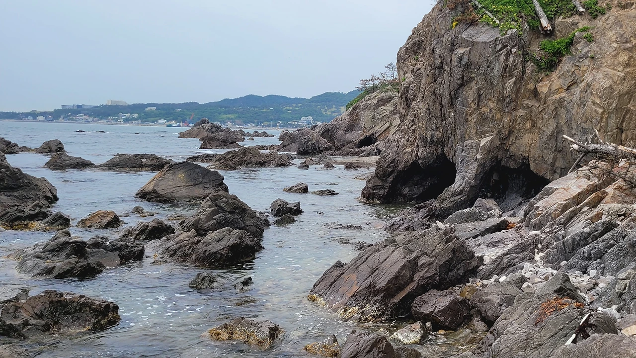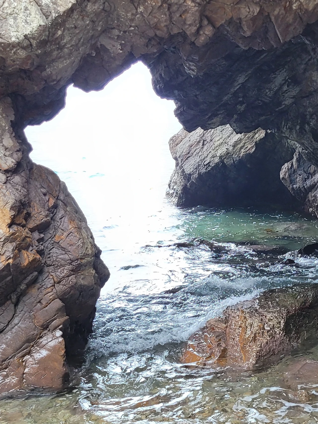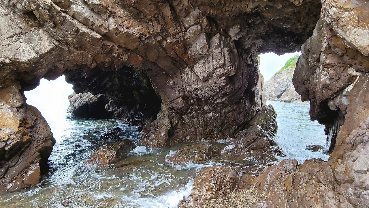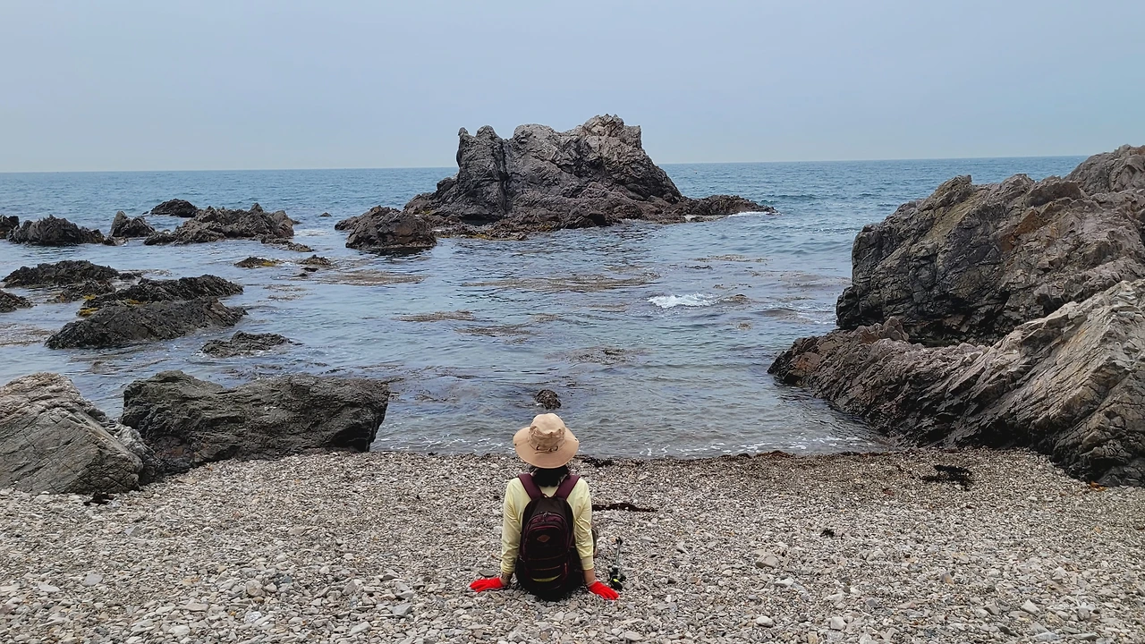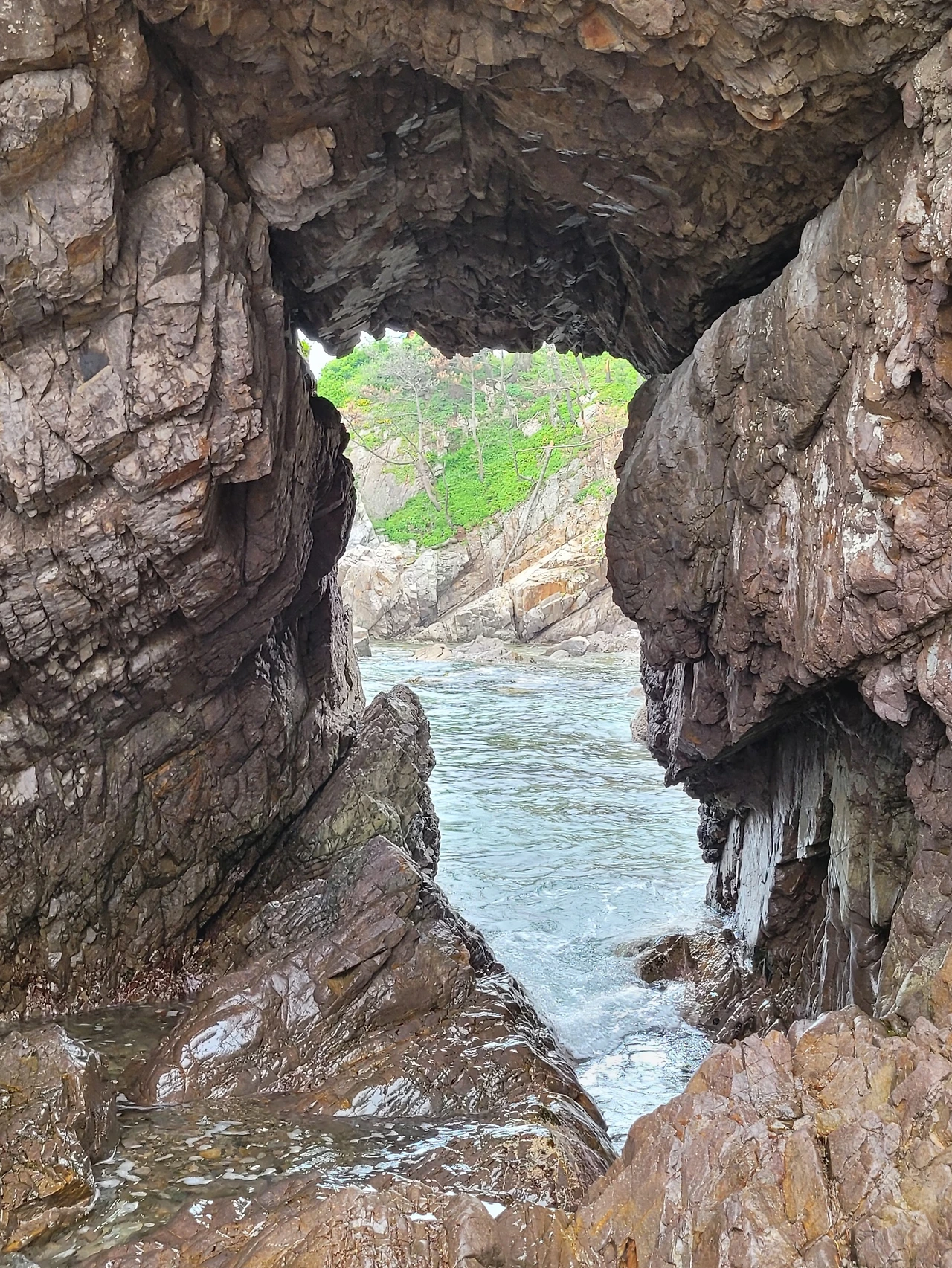단용굴은 접근이 쉽질 않다. 해안가를 따라 남쪽으로 몇 차례 바위를 넘어야 한다. 확인 욕구가 강한 내가 바위를 타고 오르는데. 아내가 제주도에서 발목 다친 일을 상기시킨다. 포기하고 멀리서 줌으로 당긴다. 확대해 보면 동굴 안에 두 사람이 보인다. 한 사람은 서 있고, 다른 한 사람은 앉아서 사진을 찍고 있다.