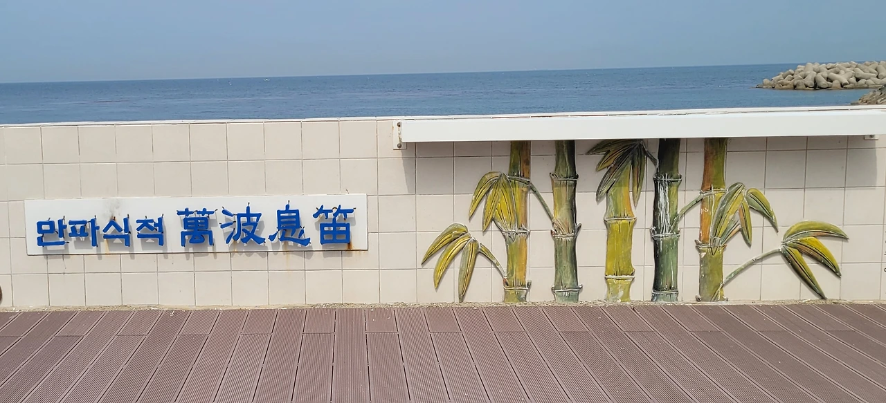 고운모래해변 한가운데 세로로 쓴 큼직한 노래비가 세워져 있다. 70년대 조미미가 불러 크게 히트한 의 노래비다. 경주시 현곡면 출신 정귀문 씨가 이곳 나정 바닷가에서 노랫말을 지은 것으로 알려져 있다. 이제 전촌리로 건너간다. 도보다리 주탑도 만파식적 모양을 땄다.