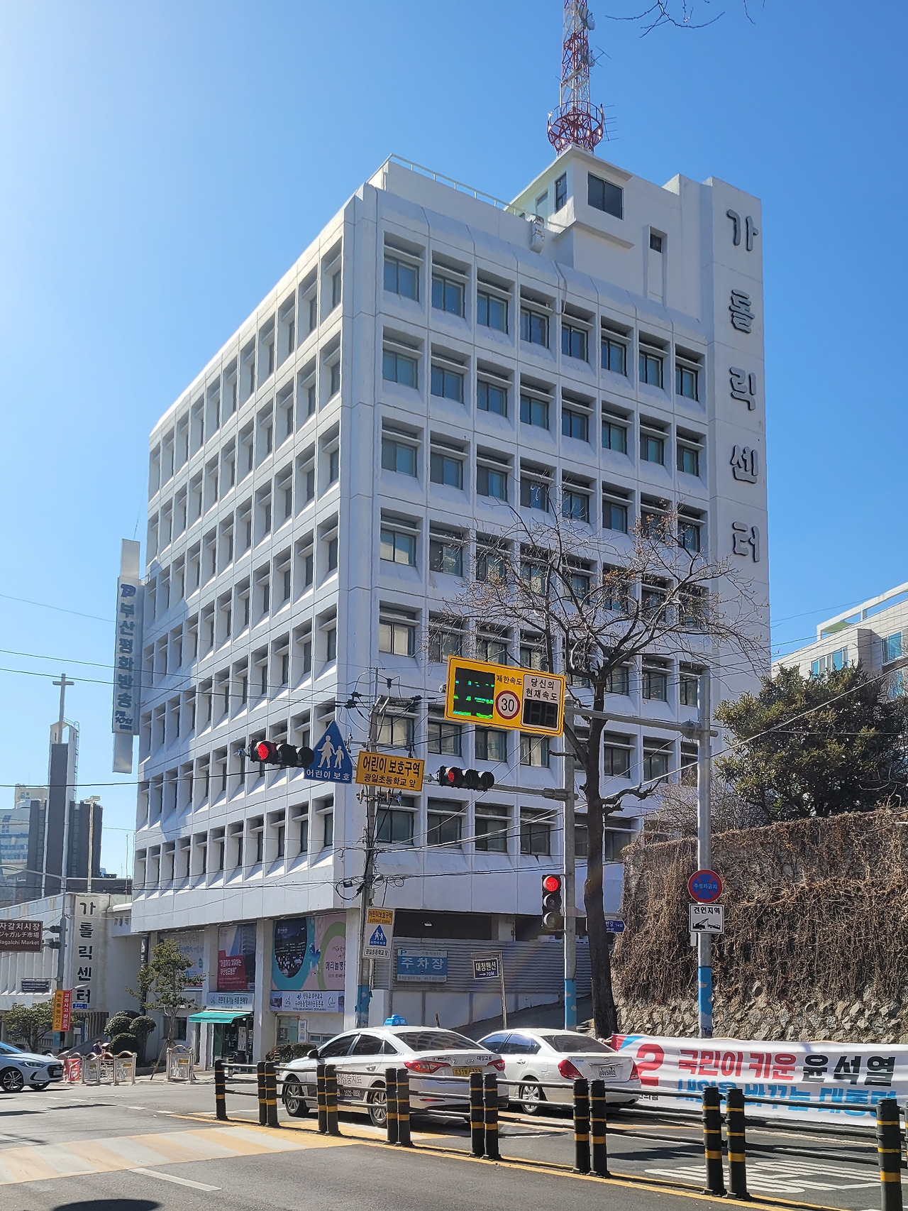 6월 항쟁 때에는 이곳 삼거리가 격전지였다. 인근의 가톨릭 센터에 항쟁 지도부가 들어가 있었다. 서울의 명동 성당과 같았다. 아침이 되면 각 대학에서 출정식을 한 학생들이 남포동에서, 중앙동에서, 부산역에서, 대신동에서, 대청동에서, 보수동에서 가톨릭 센터를 향해 올라온다.