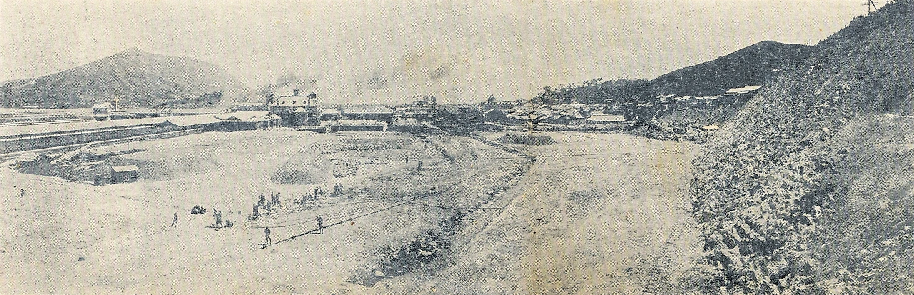 일본인은 '부산착평공사'를 시작한다. 영선고개 앞의 쌍산(영선산과 영사관산)을 깎아 평지를 만들었다. 또 그 흙으로 해안을 매축한다. 아래 사진 <1912년 부산 중구 중앙동 쌍산 착평후 시가>의 왼쪽 위가 영도 봉래산, 오른쪽이 복병산과 용두산이다. 가운데 넓은 땅이 착평공사로 생긴 새마당, 중앙동이다. 그 위에 중앙대로가 생기고, 철길이 제1부두까지 연결된다.