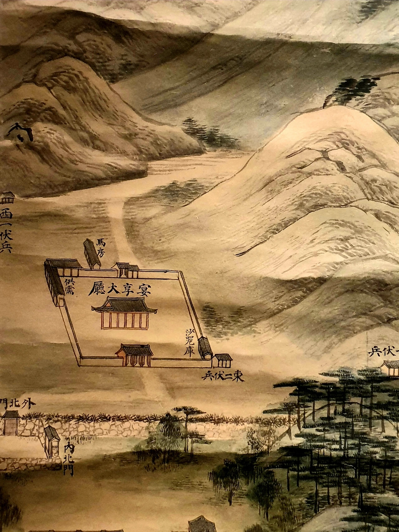 용두산을 중심으로 2미터 높이의 돌담으로 둘러 쌓인 초량왜관의 북문은 대청사거리 근처에 있었다. 일본 사자(使者)가 국가의례를 위해 연향대청에 출입할 때 이용하던 연석문(宴席門)이다. 담장 주위에는 여섯 개의 복병소(伏兵所)가 설치되어 왜관 출입을 관리했다.
