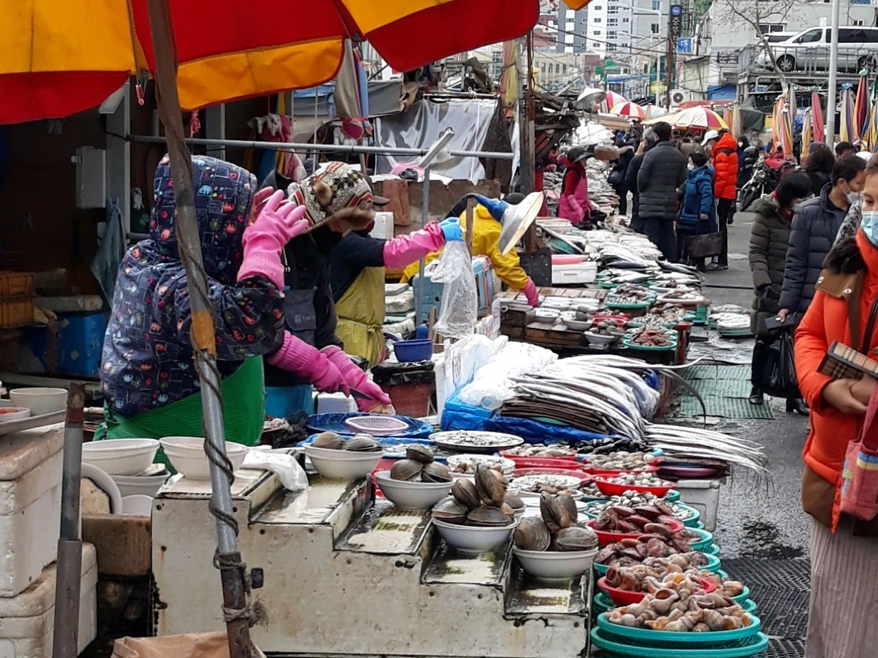 자갈치 시장은 떠들썩하다. 위판장도 떠들썩하다. 사람 사는 맛이 난다. 난전은 더 떠들썩하다. 2007년 갈매기를 형상화한 현대식 자갈치 시장 건물이 들어섰는데도 아내는 난장을 선호한다.