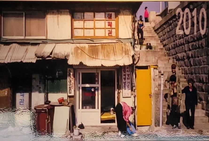 영도대교로 올라가는 계단 옆, 허름한 목조 건물이 창고로 사용되고 있다. '소문난 대구점집' 자리다. 이 건물이 혹시 그 당시 점집이 아닌가 하고 사진을 찍다 보니 뒤로 롯데쇼핑몰 건물이 보인다.