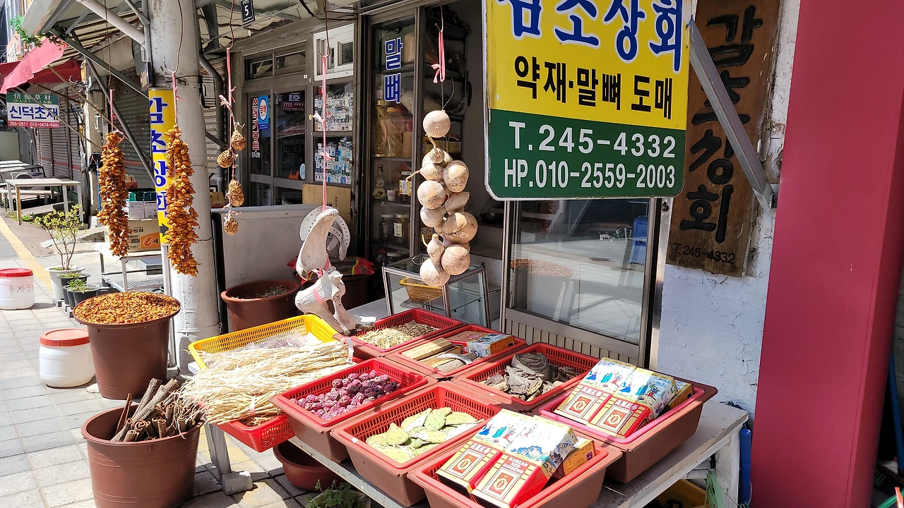 건어물 도매시장(위), 생약 건재상 거리(아래)