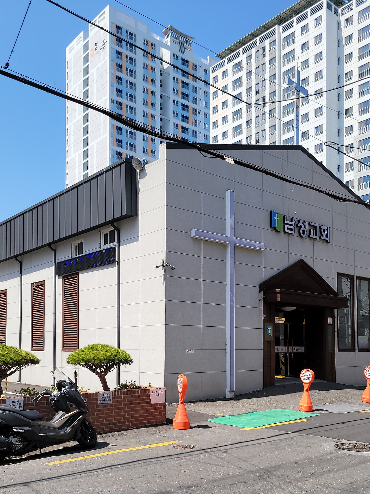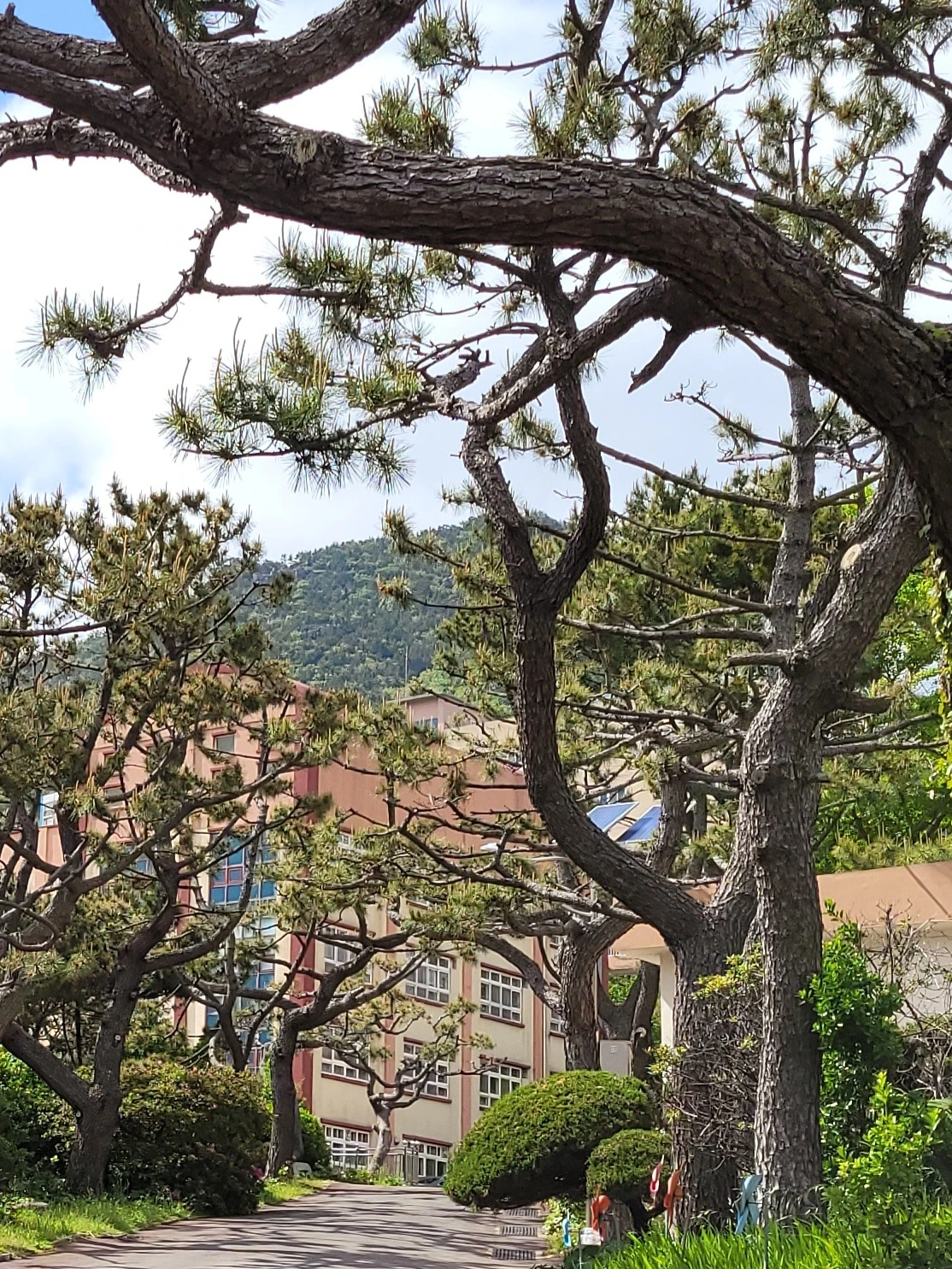 중리 해변으로 내려가면 노을 전망대 앞에서 절영도해안산책로와 만난다. 그즈음에 남고등학교가 있다. 정문에서 봐도 후문에서 봐도 교정이 해송과 언덕에 가려 내부를 드러내지 않는다. 남고 바로 뒤의 체육고등학교는 남고와는 달리 적극적으로 모습을 드러내고 있다.