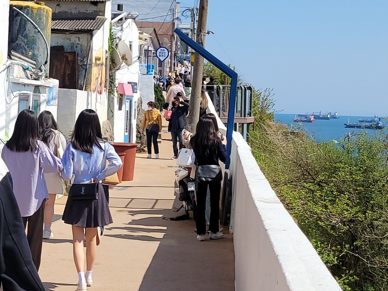 한국 전쟁 때 피란민들이 모여들었다. 해안 절벽에 루핑과 슬레이트로 움막을 짓고 임시 거처를 만들어 살면서 동네가 형성되었다. 조그만 집들이 모여 있는 소박한 마을이다. 아픈 역사와 힘들었던 삶의 흔적을 고스란히 안고 있다. 시간이 멈춘 공간이 아니다. 새로운 도약을 꿈꾸는 공간이다. 식수 때문에 싸우고 공동화장실 사용으로 아귀다툼을 하면서도 서로 도우며 살던 고단한 날의 기억이 향수로 승화된다.