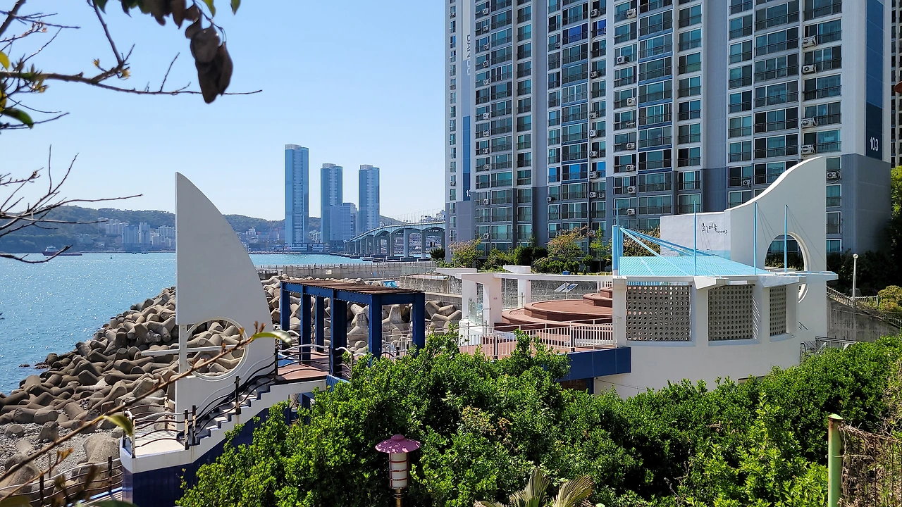 반도보라아파트 앞 절영해안산책로 관리사무소 건물은 한 폭의 그림과 같다. 바닷가에 돛을 올린 요트의 형상을 하고 있다. 여기서 시작하여 해안선을 따라 중리까지 약 3킬로미터의 산책로가 이어진다. 바다 건너 송도가 바라보인다. 옛부터 경치 좋기로 이름난 곳이다. 웬만했으면 2송도라고 했겠는가. 6,70년대까지 자갈 해변에서 해수욕도 했다. 군사보호구역이라 접근이 어려웠던 가파르고 험난한 지역까지 개방된다. 2001년 절영해안산책로를 만들었다. 우리는 절영로를 따라 2송도삼거리 쪽으로 걷는다.