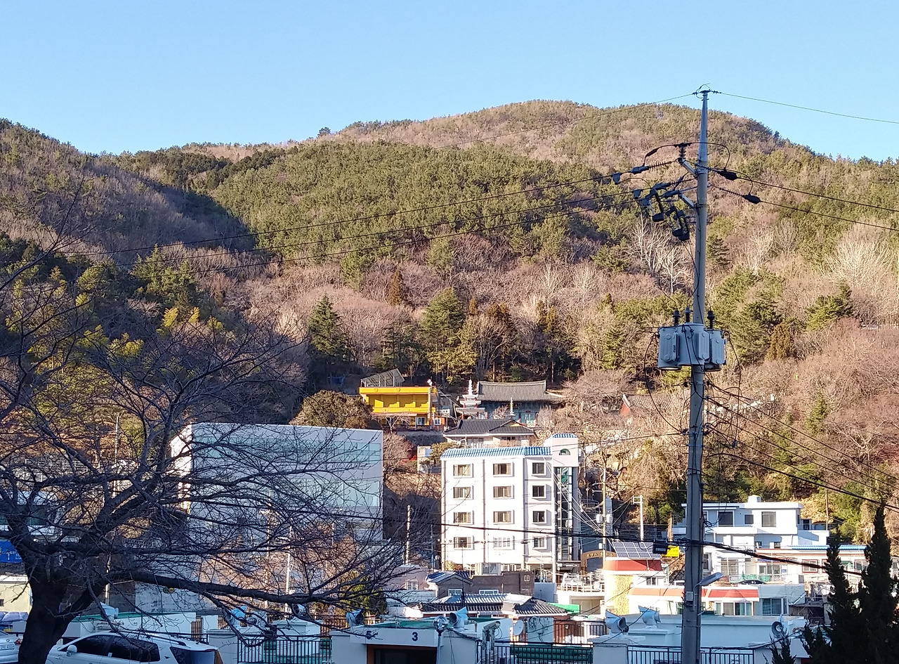 금수사. 망양로를 따라 이바구길은 이어진다. 왼쪽으로 충혼탑이 있는 중앙공원 녹지를 휘감아 돈다. 중학교 때 송충이 잡으러 왔던 금수사다. 입이 뻘겋게 되도록 버찌를 따먹던 기억이 난다. 60년대에는 금수사 근처만 숲이 우거지고 나머지는 민둥산이었다. 임진왜란 끝 무렵, 사명대사가 강화사로 왜국으로 건너가면서 배를 기다리며 하루 밤을 묵었던 곳이다. 수도처로 좋은 곳이라 하여 절을 지었다고 한다.