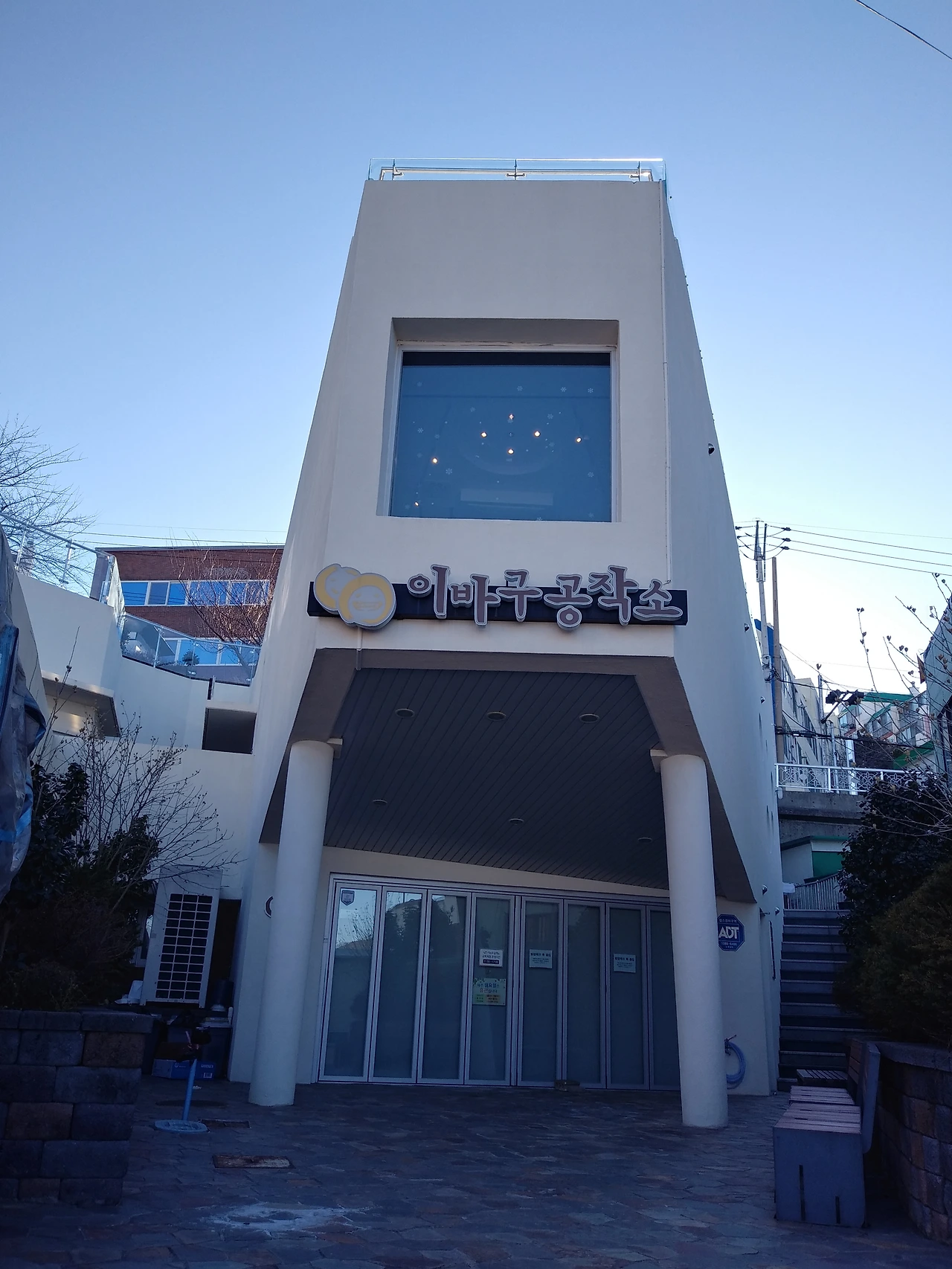 마을의 수호신을 모시는 당산을 지나 산복도로 버스 정류소로 간다. 쉬어 가란다. 정류장 긴 의자에 전기패널 온돌이 설치되어 있다. 바닥이 따뜻하다. 정류소 바로 밑이 이바구 공작소다.