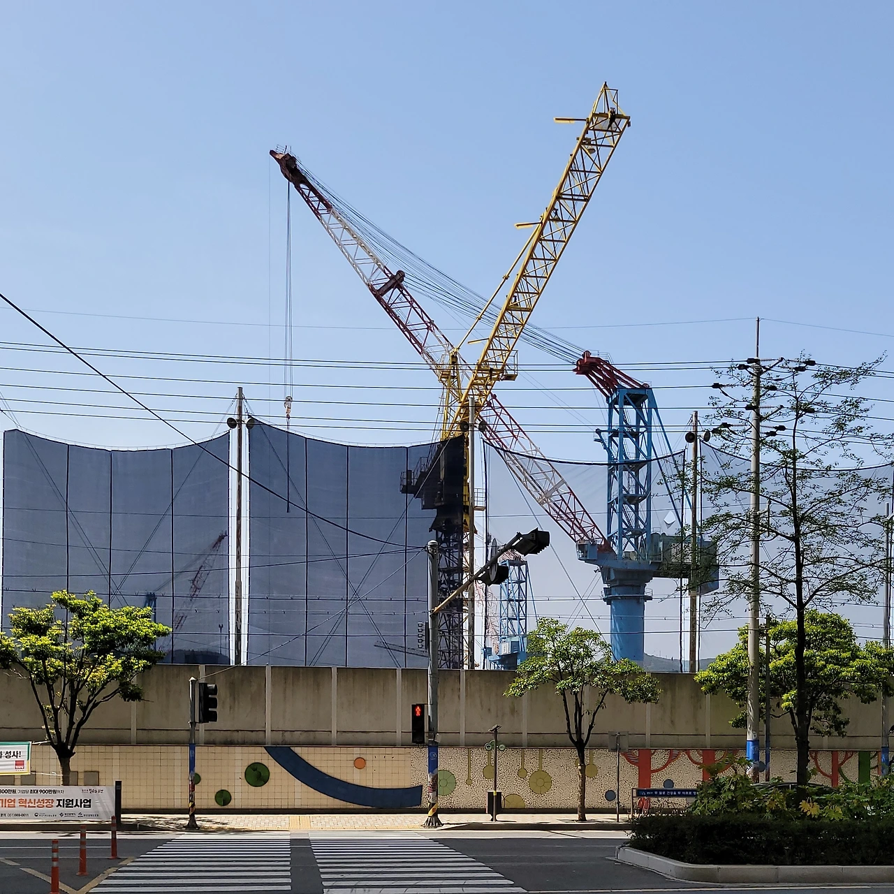 봉학초등학교 건너편이 HJ중공업이다. 건널목에서 HJ중공업을 바라본다.