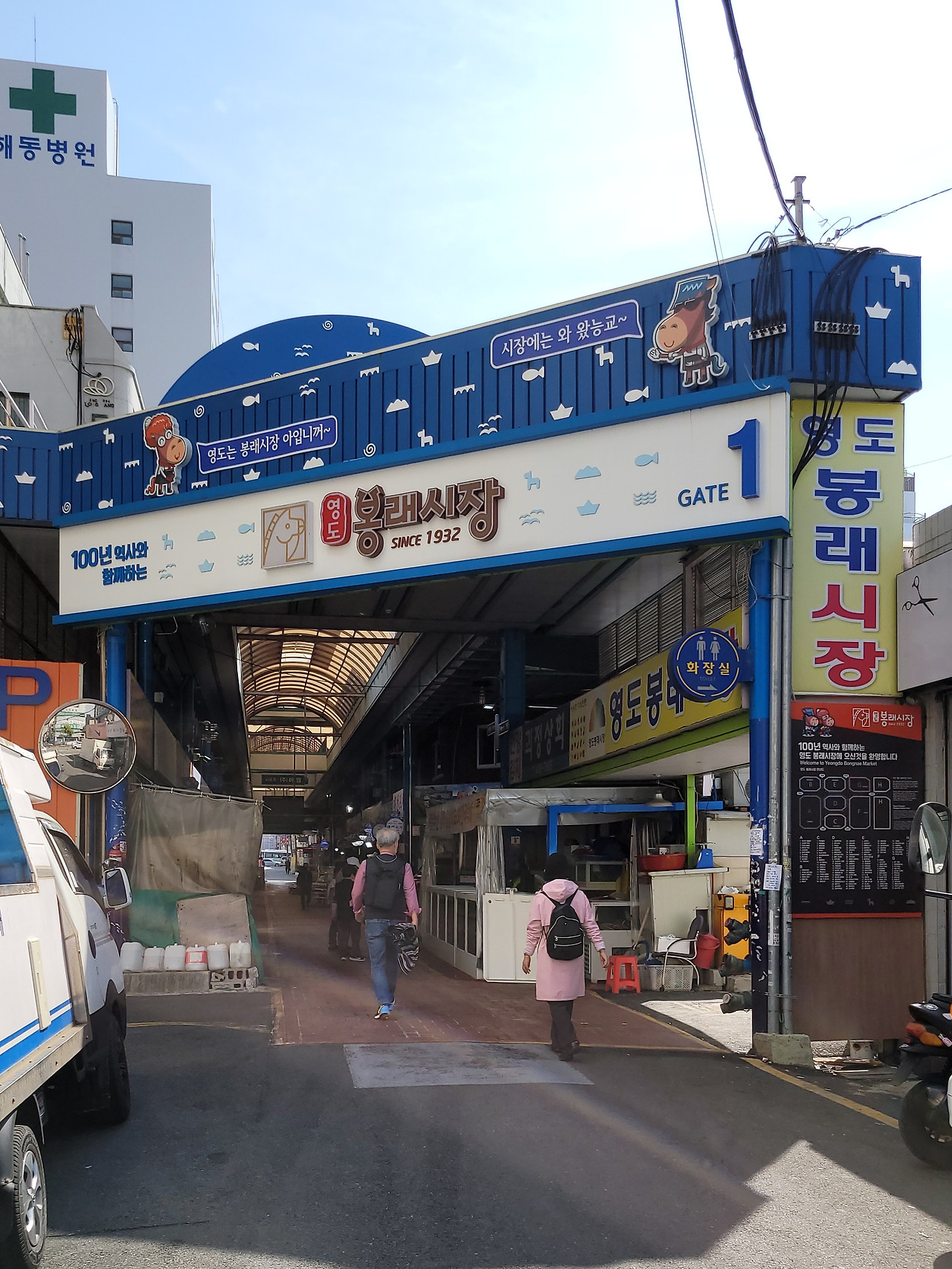 봉래시장으로 간다. 봉래동 로터리 부근을 '고리장터'라 한다. 앞서 말한 '절영마'는 태종대와 봉래산 기슭의 국마장(國馬場)에 방목하였다. 매년 한, 두 번씩 조정에서 내려온 목자(牧者)가 말을 검사한다. 국가가 징발할 말을 고르는 작업이다. 쓸만한 말은 낙인을 찍는다. 둥근 고리 모양으로 말뚝이 쳐진 곳 안에 말들을 가두어 놓고 검사한다. '말을 검사하던, 말뚝이 쳐진 고리 모양의 장소'라고 하여 이 지역을 '고리장터'라 했다고 전해진다.
